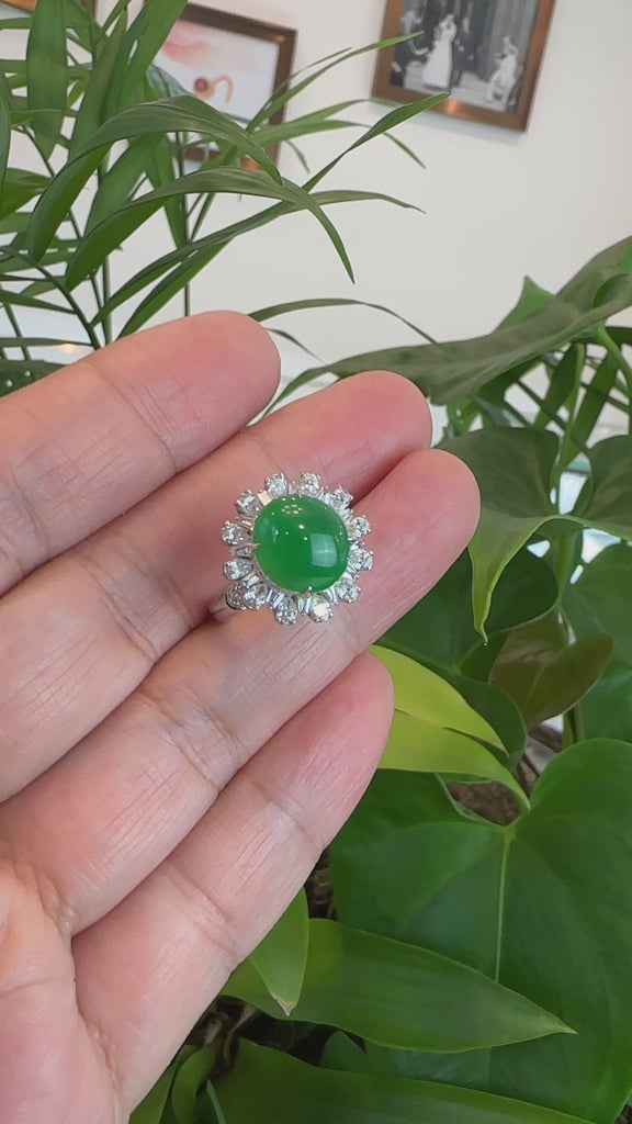 * ORIGINAL DESIGN --- This ring features a high-quality imperial jade, known as "Rich Green" (浓绿) for its deep, vibrant color. The exceptional jade stone makes this one-of-a-kind ring both rare and luxurious. Its exquisite design adds beauty and uniqueness to your everyday style.