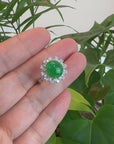 Baikalla 18k White Gold Exceptional Quality Natural Imperial Green Jadeite Jade Engagement Ring With Diamonds