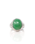 Design concept --- Elevate your collection with our Natural Imperial Jadeite Jade Signet Ring in premium 18k white gold. Crafted to perfection and made to last, it features a genuine green imperial jadeite jade stone, symbolizing good luck and success. The ring is also accented with diamonds. The designs on 18k gold band adds a modern touch with an elegant polished finish, making it a versatile and distinctive accessory for any occasion. Embrace the beauty of jade with this one of a kind, timeless piece.