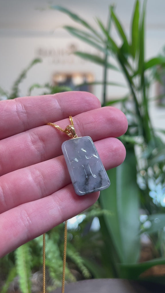 * Design Concept--- This rectangle pendant features natural Burmese jadeite jade, intricately carved with a classic cross design. The jade is an icy black and grey Wuji color throughout, with a smooth and translucent texture. Wuji (乌鸡), meaning “black chicken,” refers to the distinctive blackish-grey coloration prized in jadeite. Finished with a solid 18K yellow gold bail, this pendant is both meaningful and elegant, making it a thoughtful gift for yourself or someone you love.