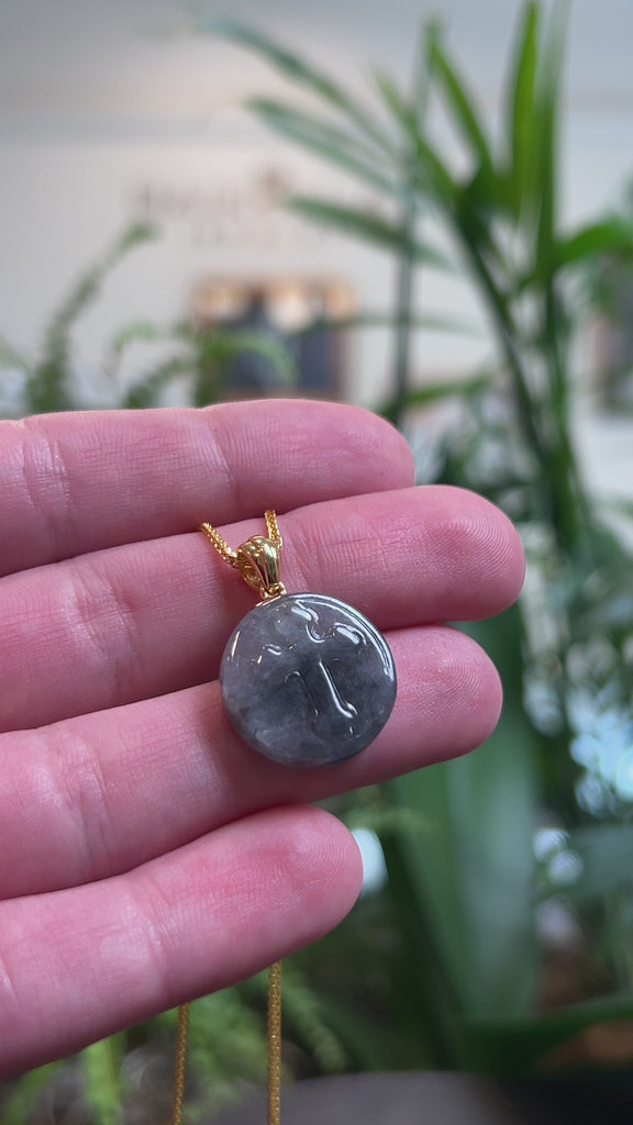 * Design Concept--- This round pendant features natural Burmese jadeite jade, intricately carved with a classic cross design. The jade is an icy black Wuji color throughout, with a smooth and translucent texture. Wuji (乌鸡), meaning “black chicken,” refers to the distinctive blackish-grey coloration prized in jadeite. Finished with a solid 18K yellow gold bail, this pendant is both meaningful and elegant, making it a thoughtful gift for yourself or someone you love.