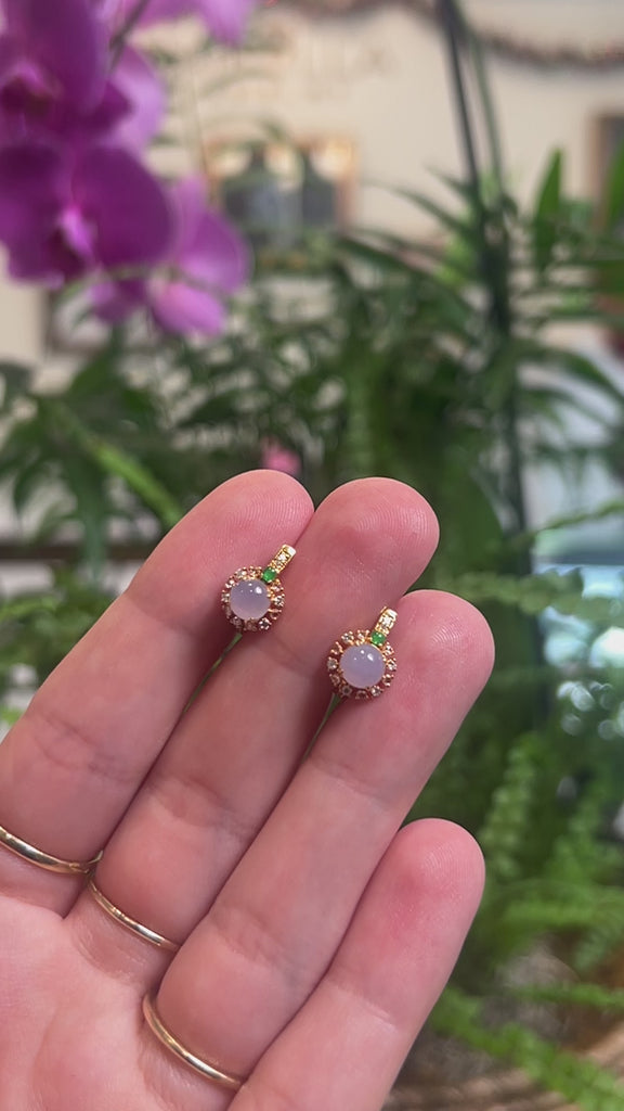 Baikalla 18K Yellow Gold Icy Lavender Burmese Jadeite Jade "Huggie" Earrings W/ Natural Diamonds & Imperial Green Jade