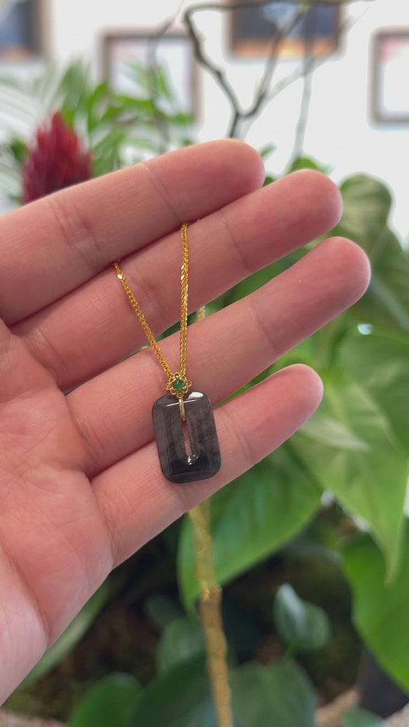 * DESIGN CONCEPT--- This Fashion Simple Pendant is made with very high-quality genuine Burmese ice wuji jadeite jade. The design was inspired by the simplistic yet elegant figure of the rectangle style. Representing enlightenment, completeness, and contentment. The unique finish with 18K gold imperial jade bail. adds another layer of sophistication to this one of a kind collectors item. Every angle and detail is exquisite. It's a perfect gift for yourself and your love. It's a high-end jade jewelry for collectibles.