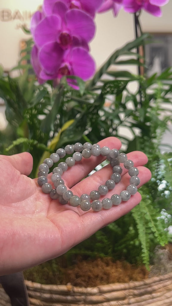 * DETAILS---This bracelet is made with fine quality, genuine Burmese jadeite jade beads in a Wuji color (乌鸡) "black chicken" a blackish grey tone throughout. The jade texture is so smooth and translucent. Known for its durability, jadeite is also believed to bring good luck. Whether as a gift for yourself or a loved one, this jade beaded bracelet is a meaningful piece.