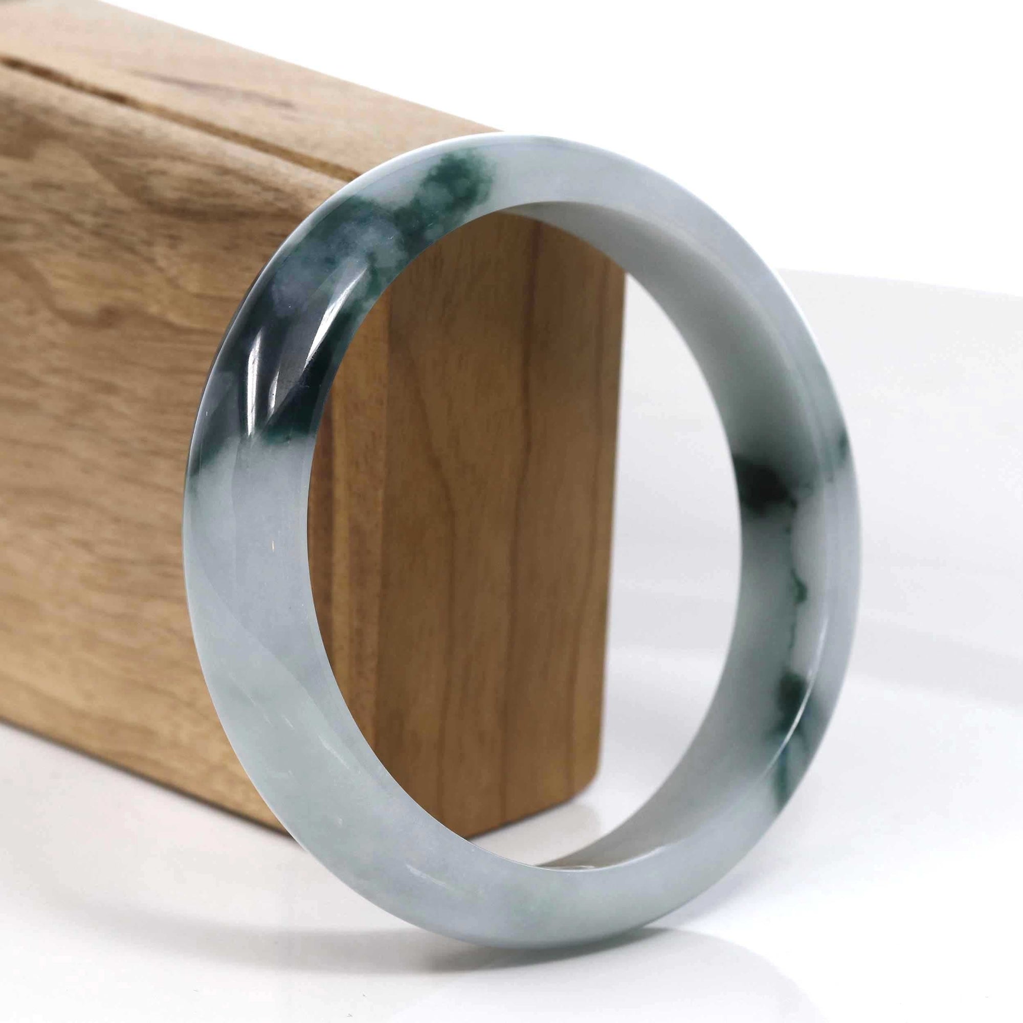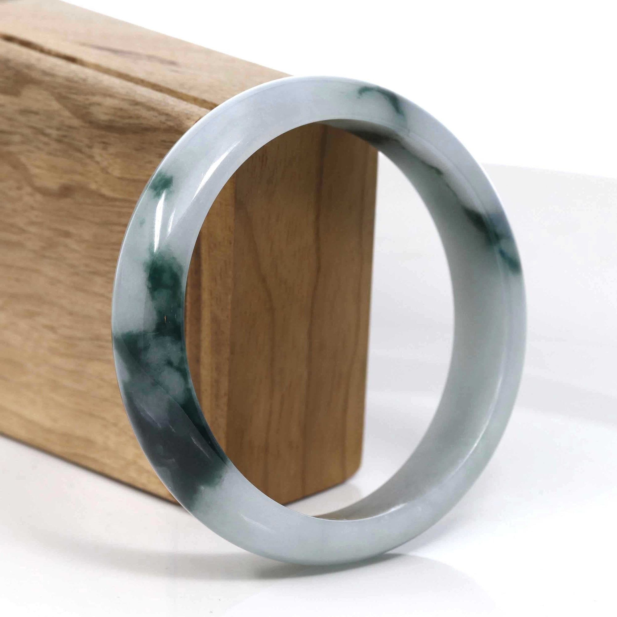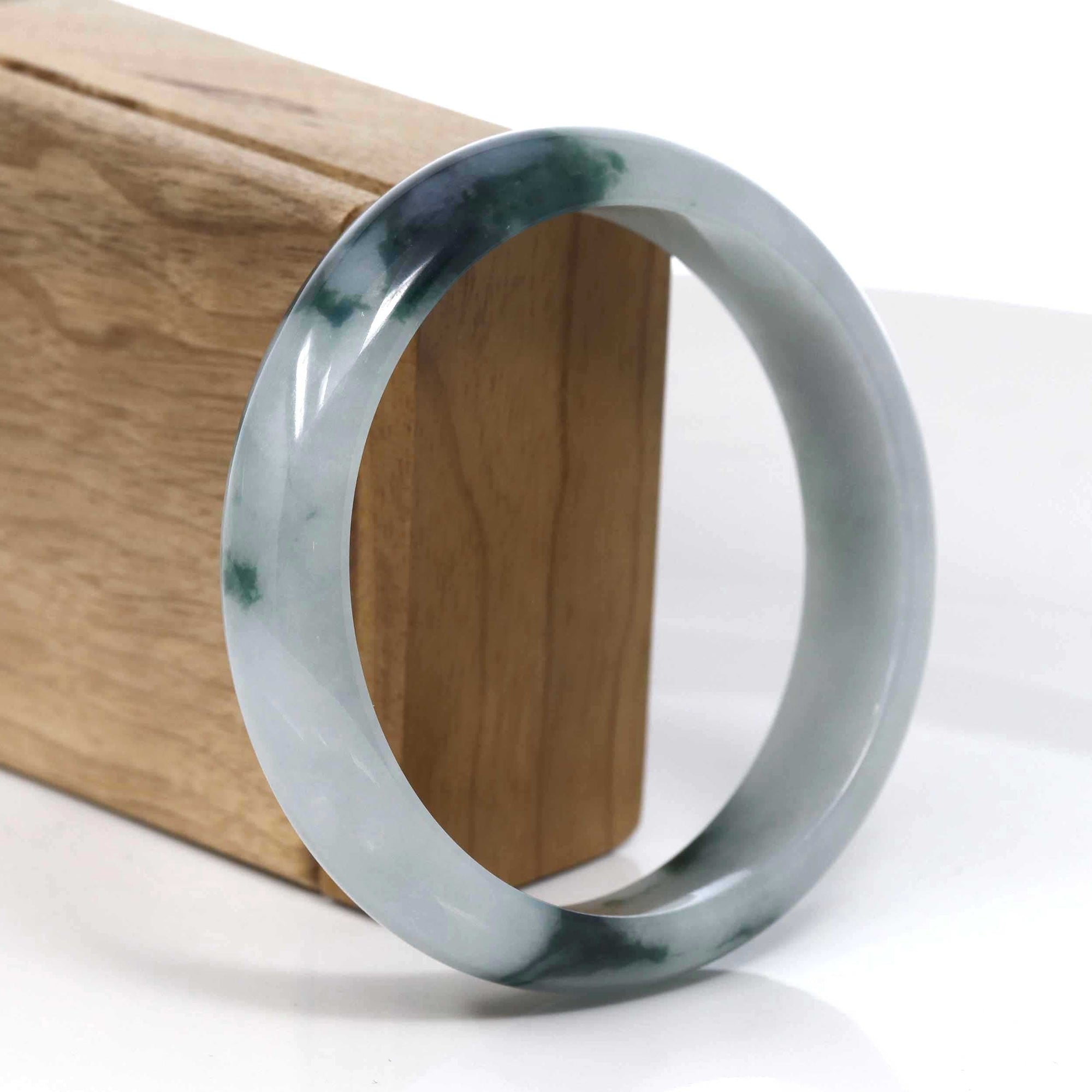 * DETAILS---This bangle is made with genuine Burmese old mine Jadeite jade, The jade texture is very smooth and translucent with green color. It's a very unique color bangle. You know the genuine jade bangle is always meaningful for someone. It's a Classic half round comfort style bracelet. It's a special gift for yourself or your love.