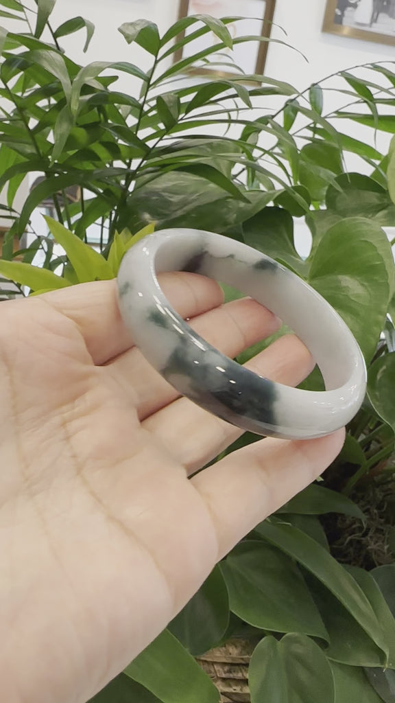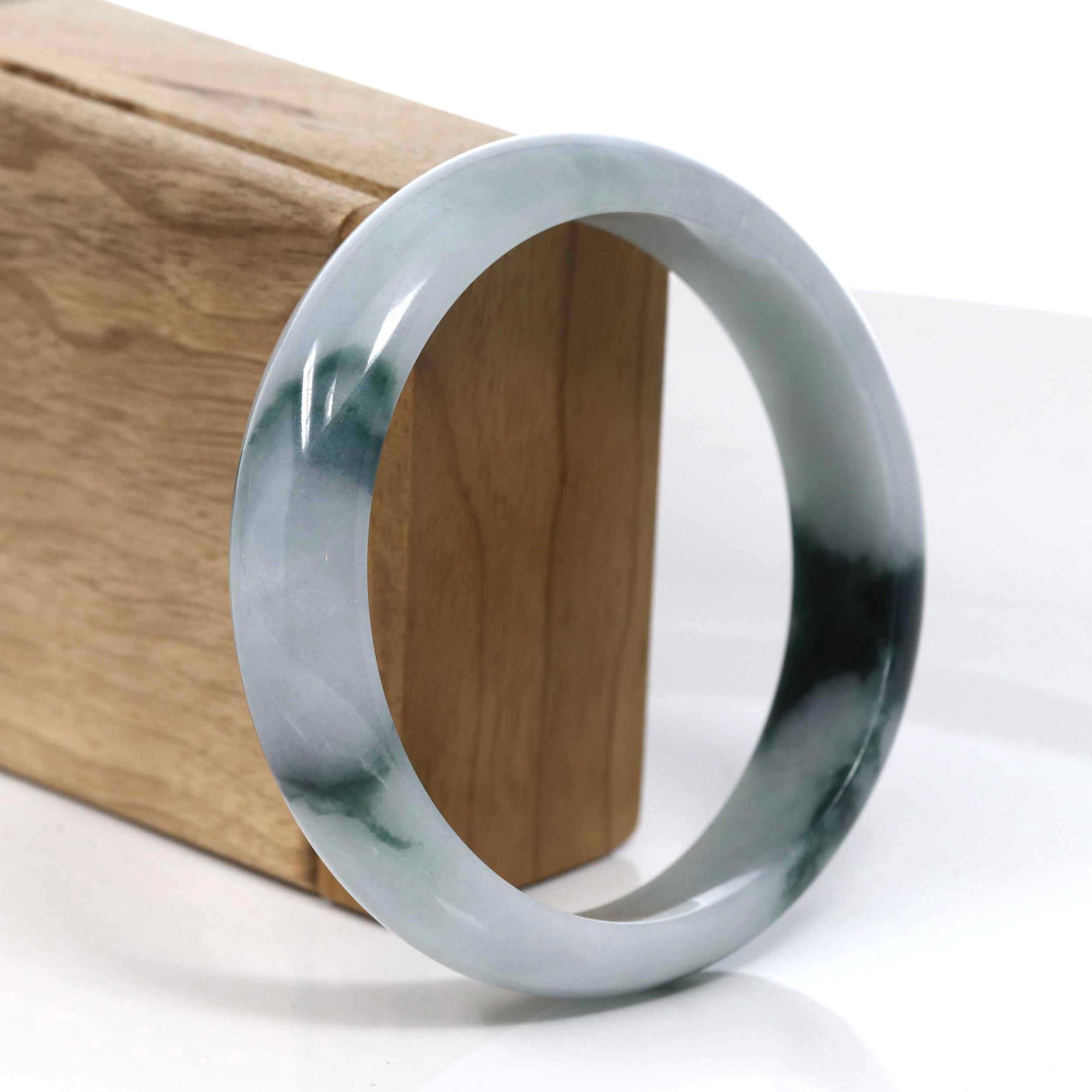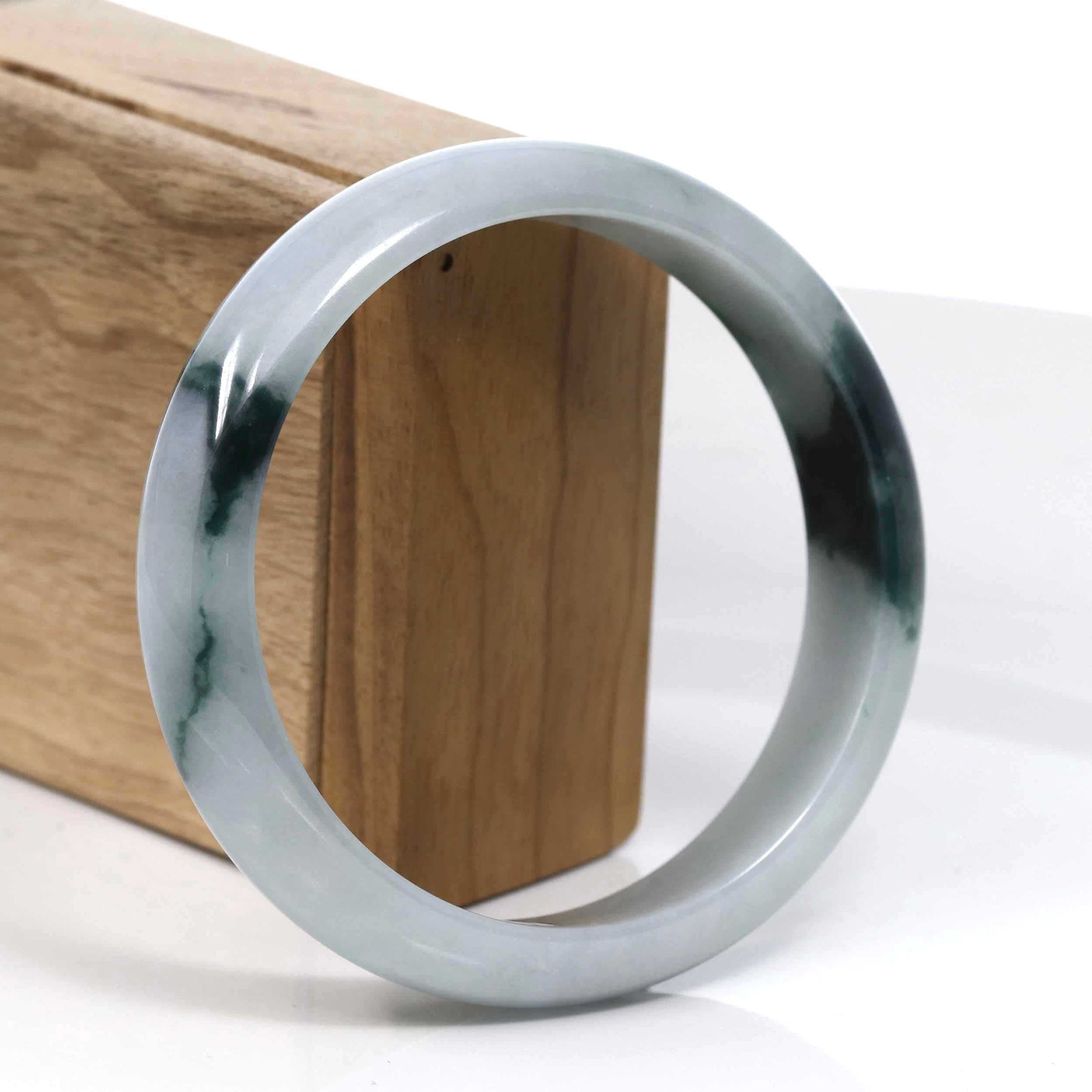 * DETAILS---This bangle is made with genuine Burmese old mine Jadeite jade, The jade texture is very smooth and translucent with green color. It's a very unique color bangle. You know the genuine jade bangle is always meaningful for someone. It's a Classic half round comfort style bracelet. It's a special gift for yourself or your love.
