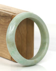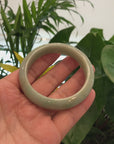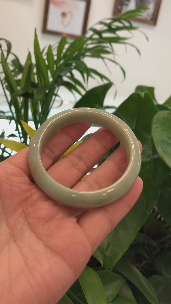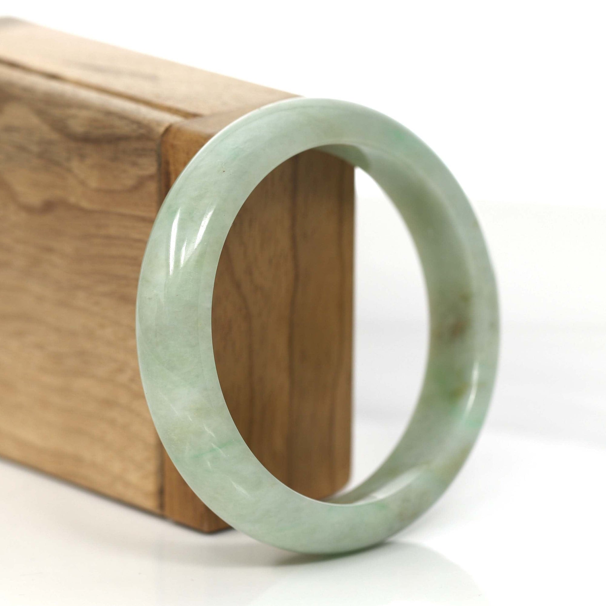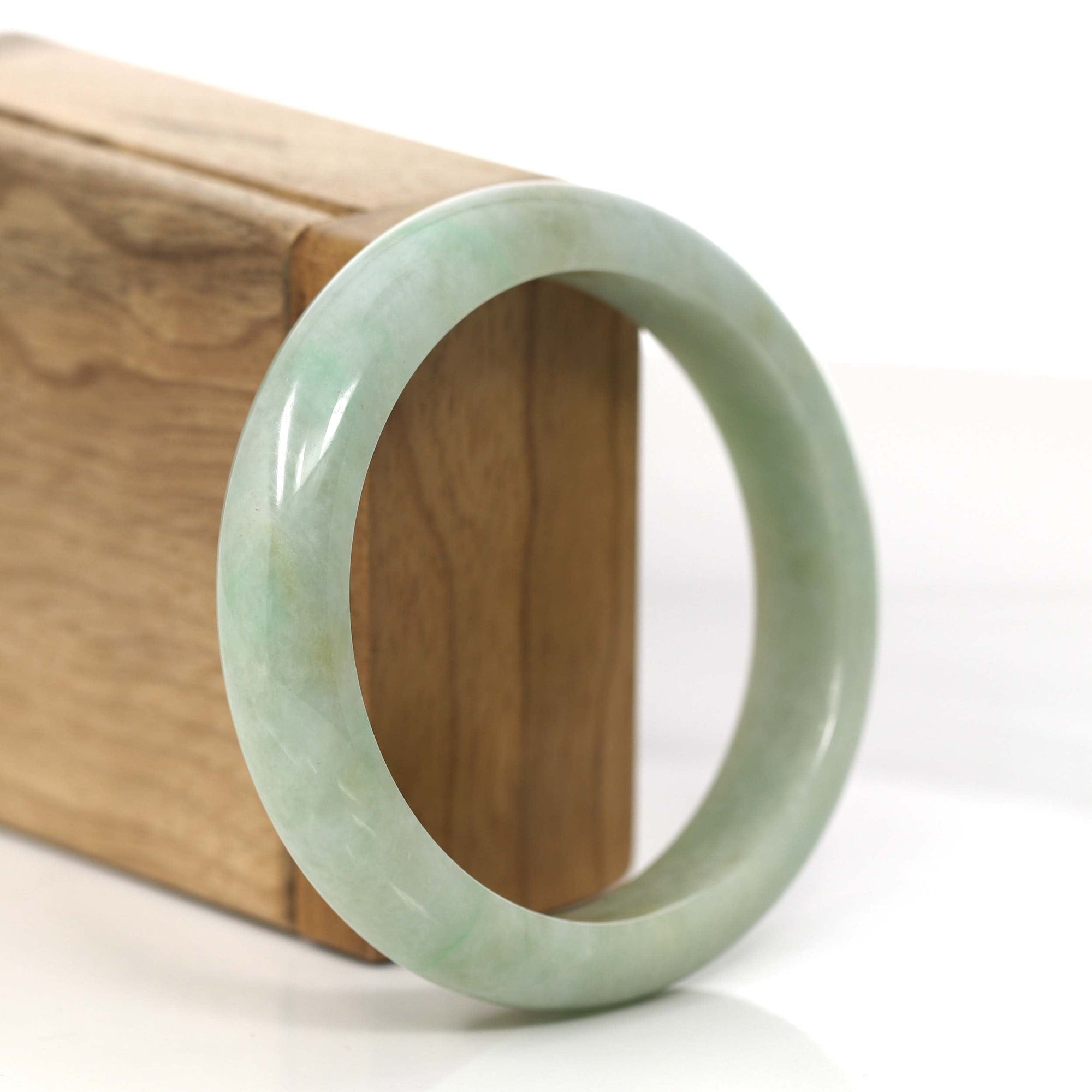 * DETAILS--This bangle is made with fine genuine Burmese Jadeite jade. The jade texture is fine and smooth with some green yellow color. It just has little clouds and little natural line. It's a very unique bangle. The Classic half-round comfort style bracelet. Jadeite jade is the toughest gemstone on the planet. People believe the real jade is a lucky gemstone. It's a special gift for you and your love.