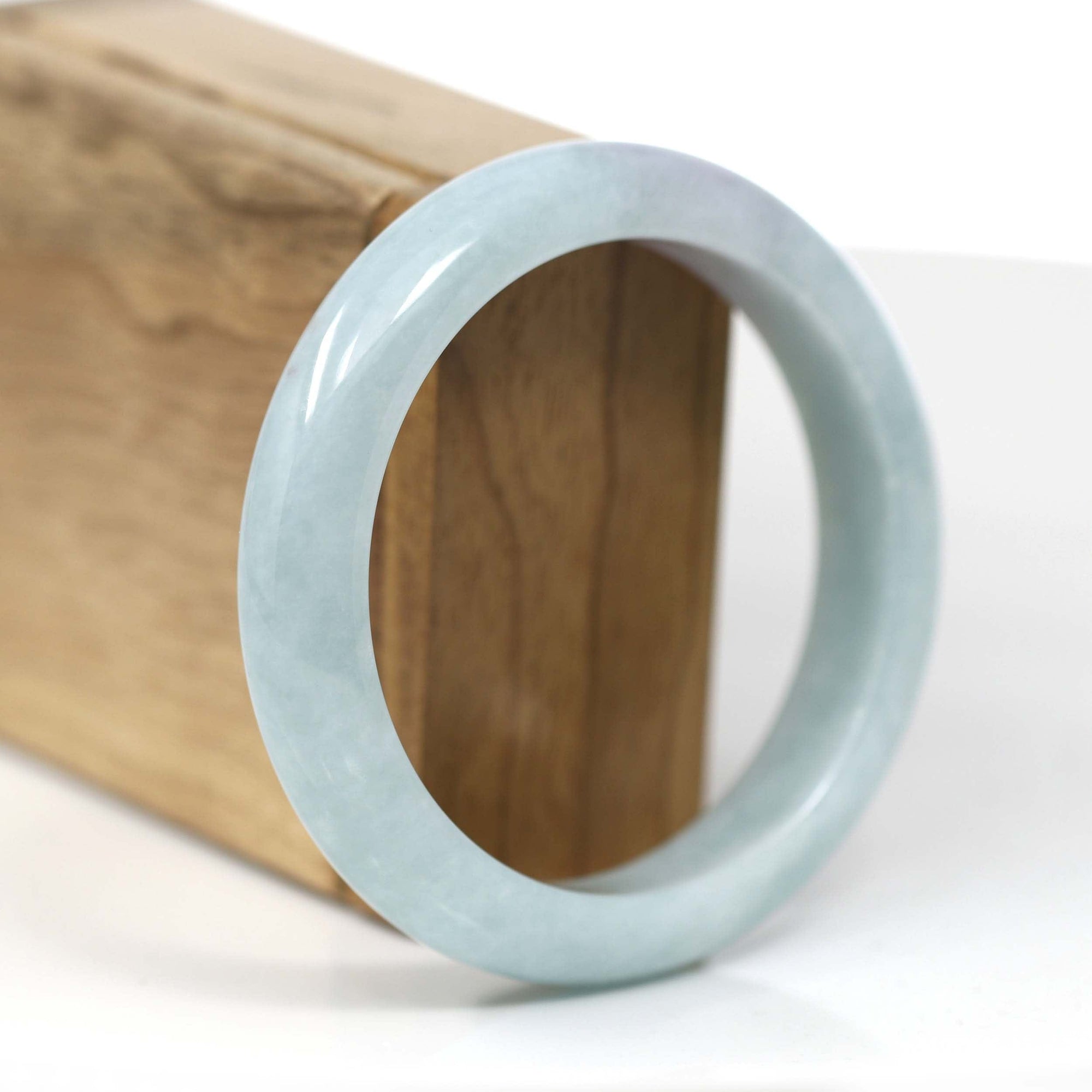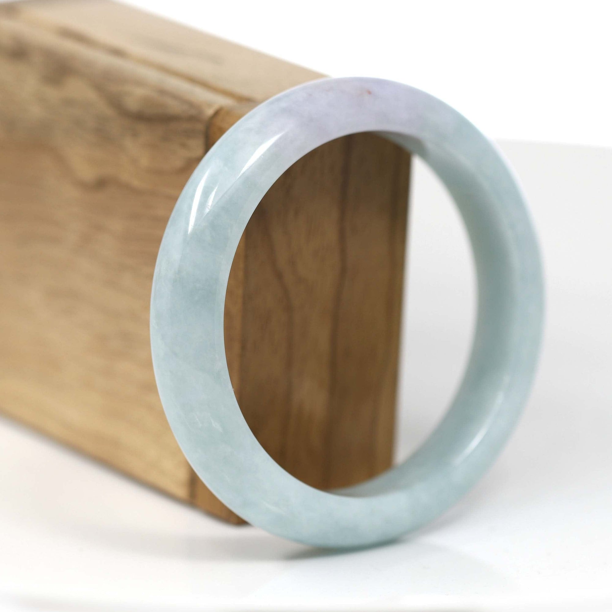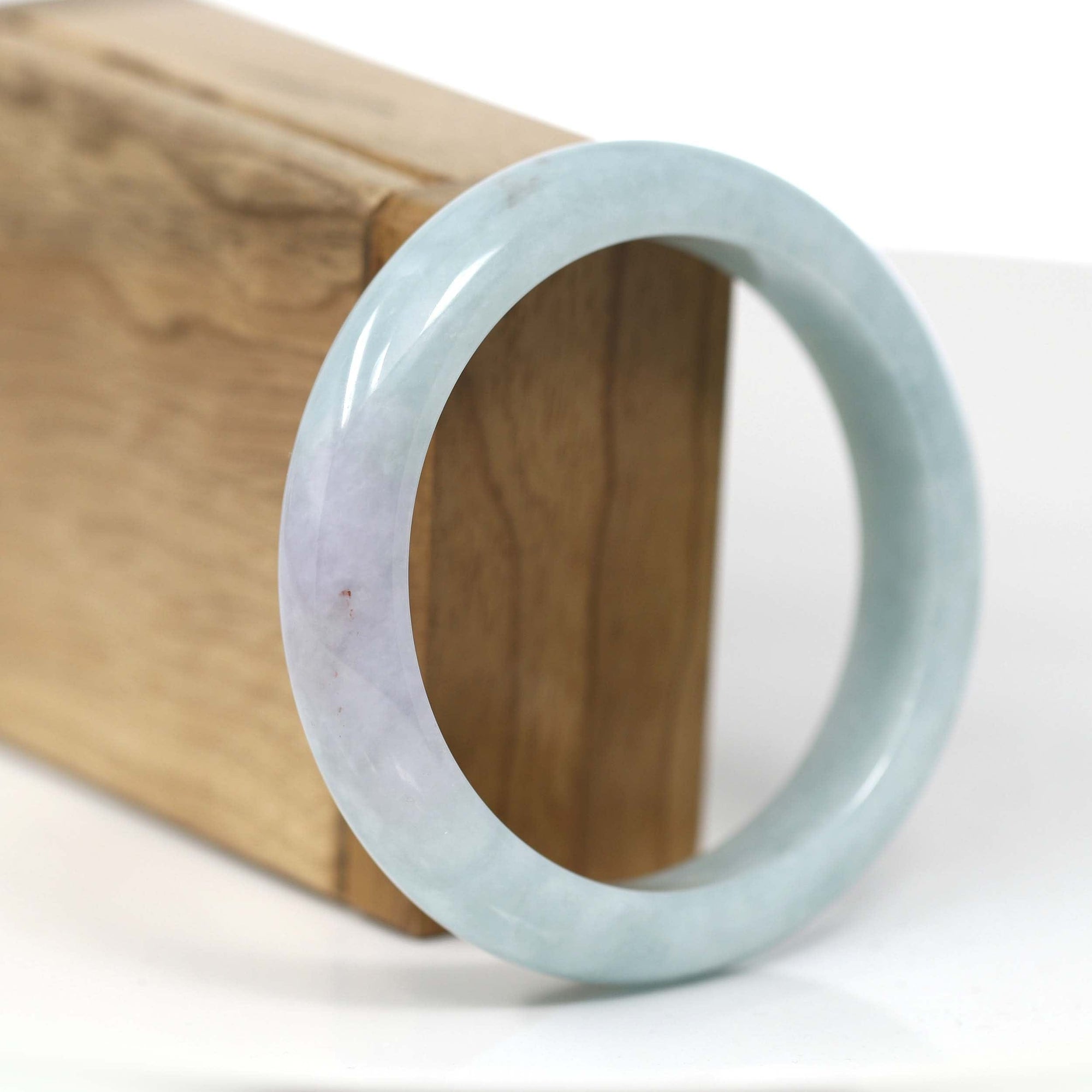 * DETAILS--This Bangle featuring lavender Natural Burmese Jadeite Jade, The texture is very smooth with lavender color, just has a little bit clouds line. This classic half-round style is amplified by the stunning white color with a blue undertone. Each Baikalla Classic Bangle is a unique masterpiece, as the natural variations in the Jadeite Jade create distinctive patterns and shades within the stone. It's a special gift for you and your love.