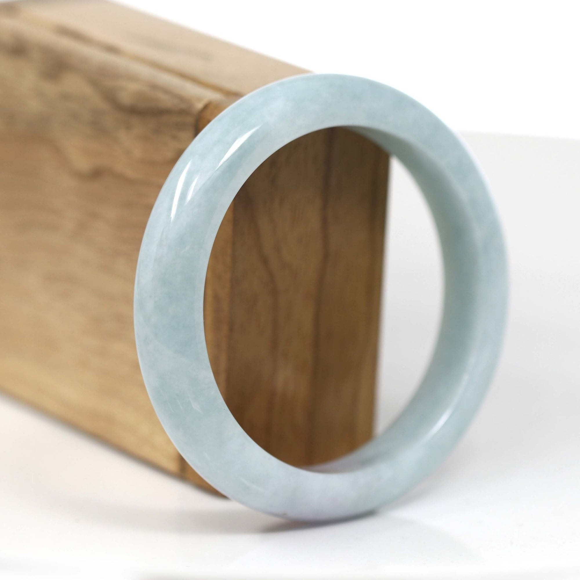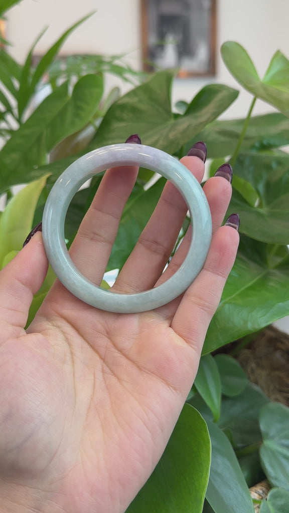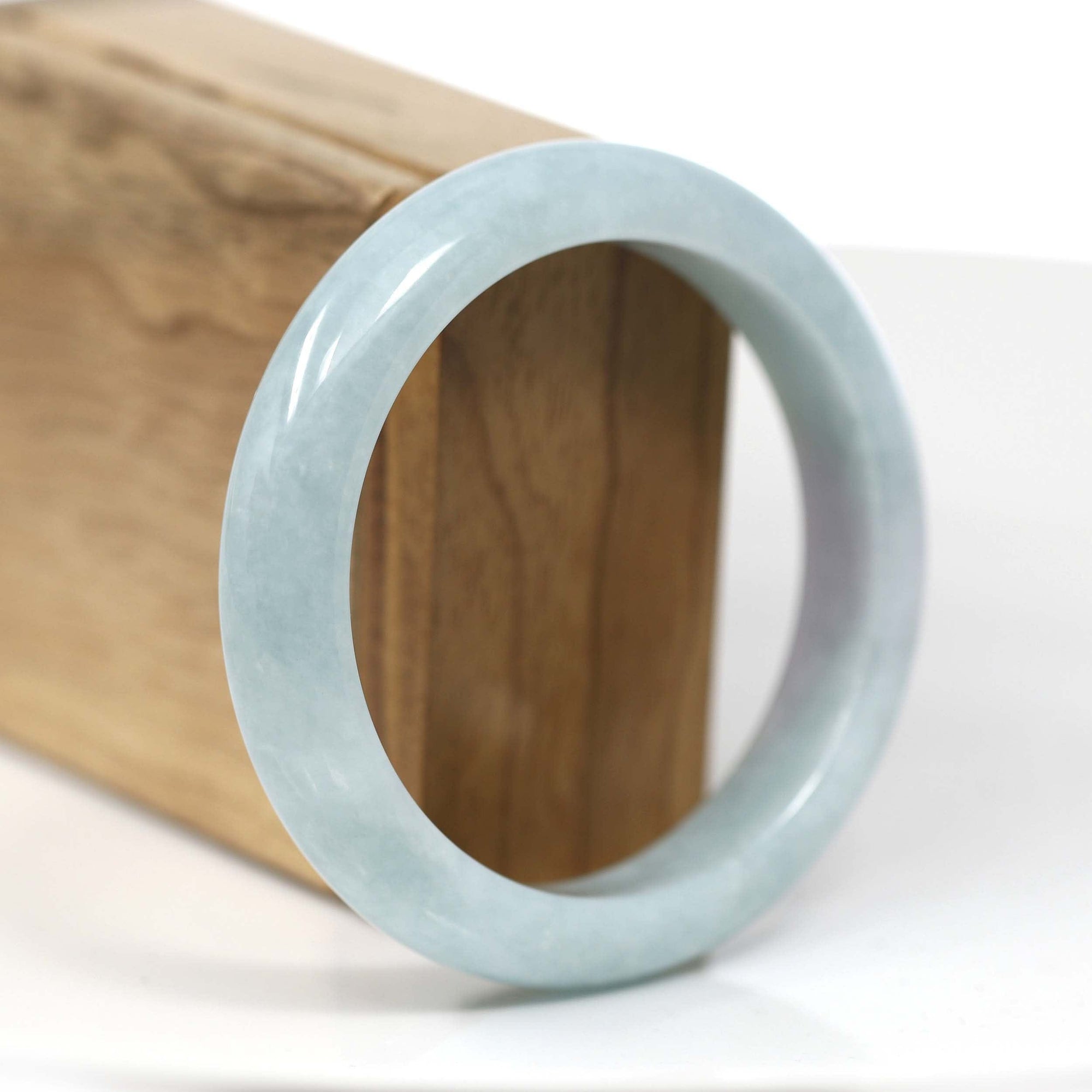 * DETAILS--This Bangle featuring lavender Natural Burmese Jadeite Jade, The texture is very smooth with lavender color, just has a little bit clouds line. This classic half-round style is amplified by the stunning white color with a blue undertone. Each Baikalla Classic Bangle is a unique masterpiece, as the natural variations in the Jadeite Jade create distinctive patterns and shades within the stone. It's a special gift for you and your love.