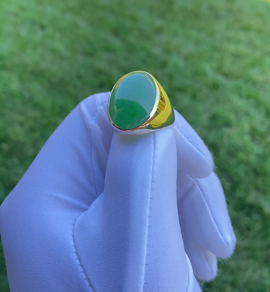 Baikalla Jewelry Gold Jadeite Jade Ring Baikalla "Classic Oval Signet" 14k Genuine Forest Green Old mine Jadeite Jade Men's Ring