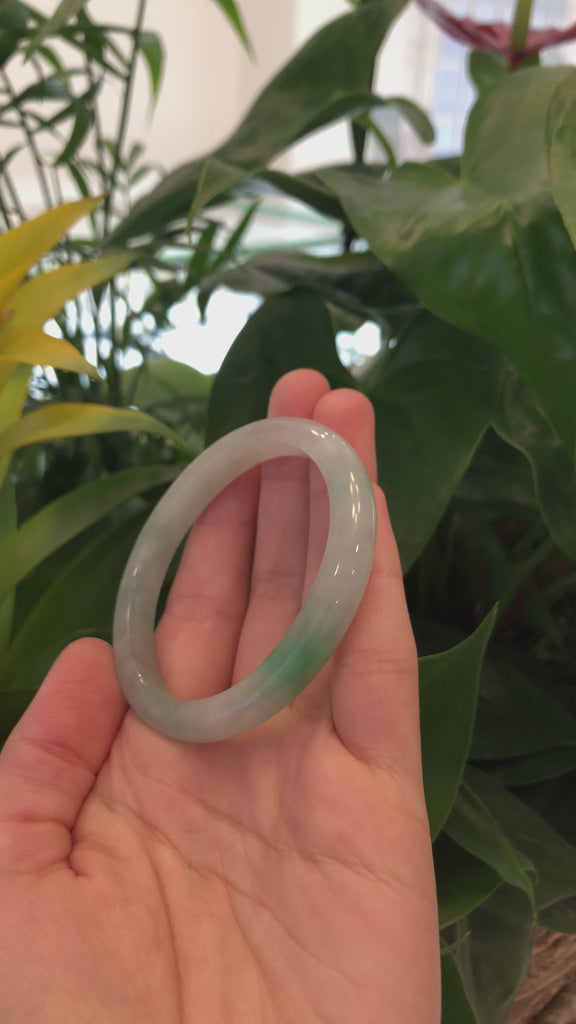 * * DETAILS--- This bangle is made with Burmese yellow-green jadeite jade. This bangle is made with old mine with fine texture. The jade texture is very smooth with part of the green color and transparence. like ice. It's a high quality jadeite jade bangle. But It's an oval style for a lovely small hand. You know the genuine jade bangle is always meaningful for someone. It's a special gift for yourself and your love.