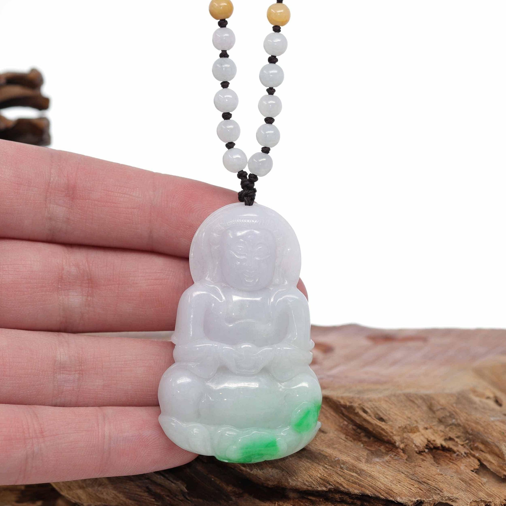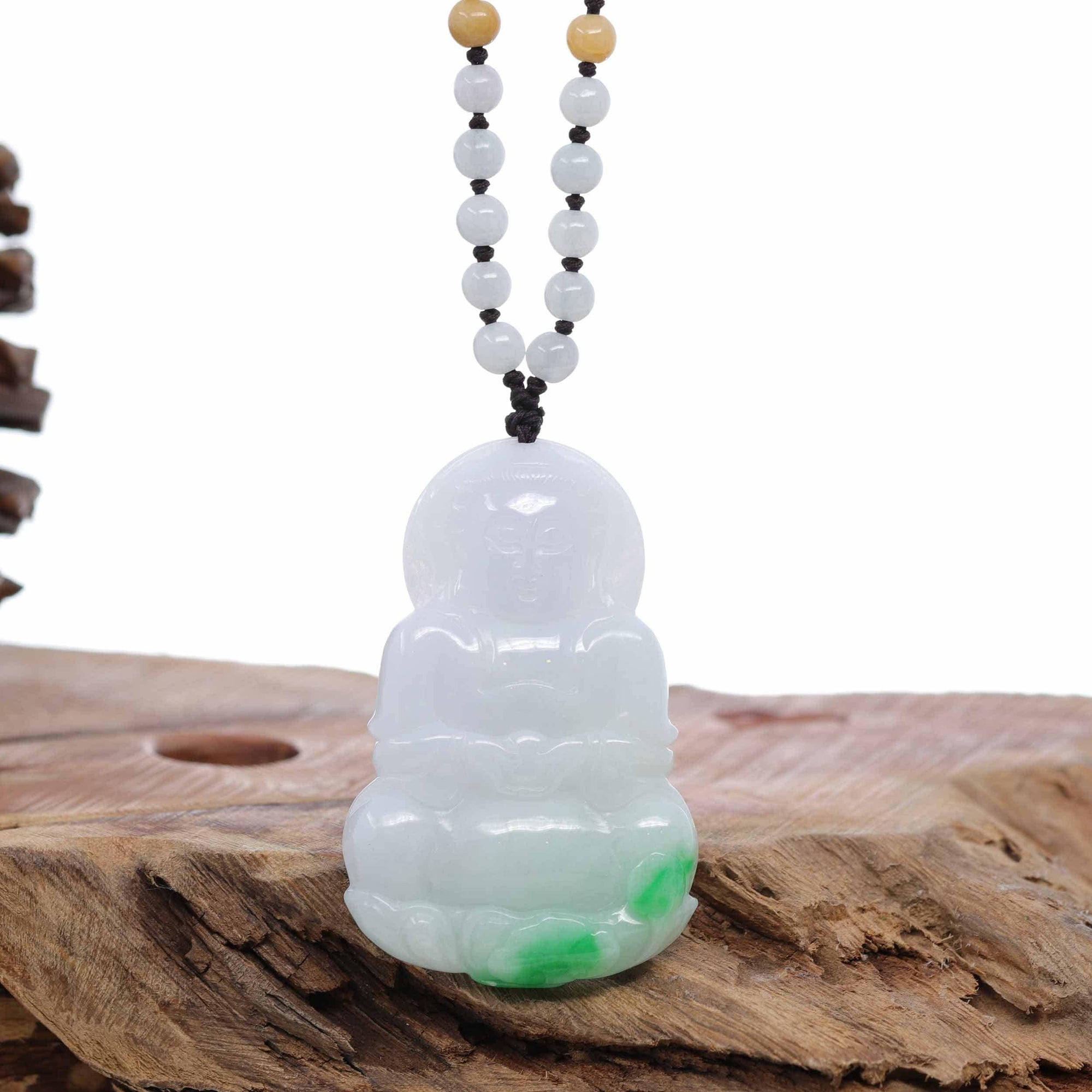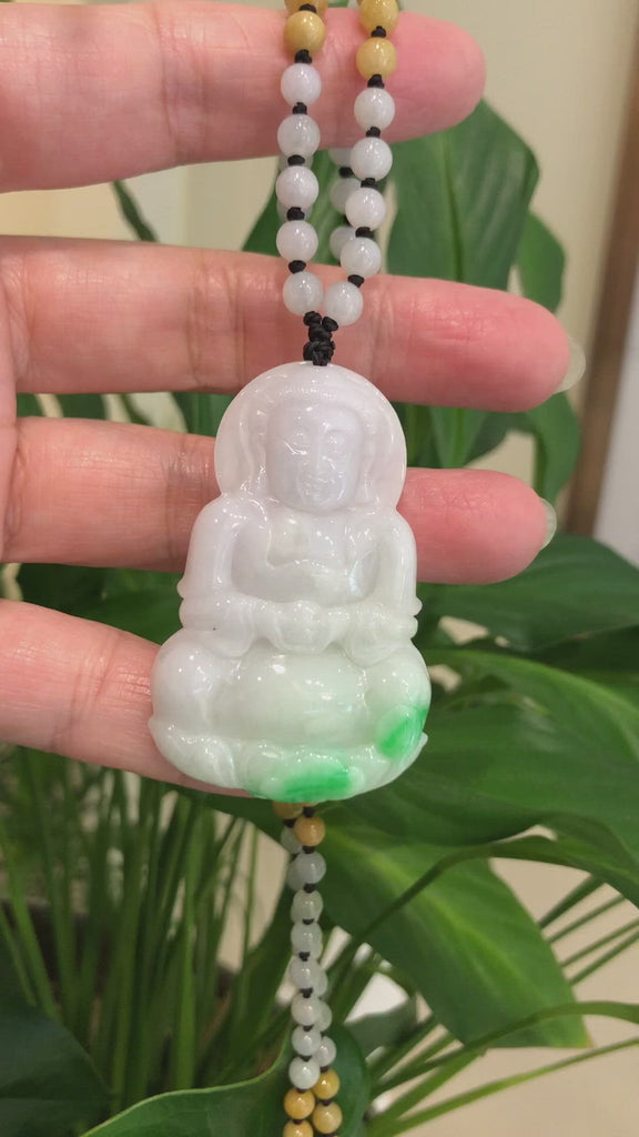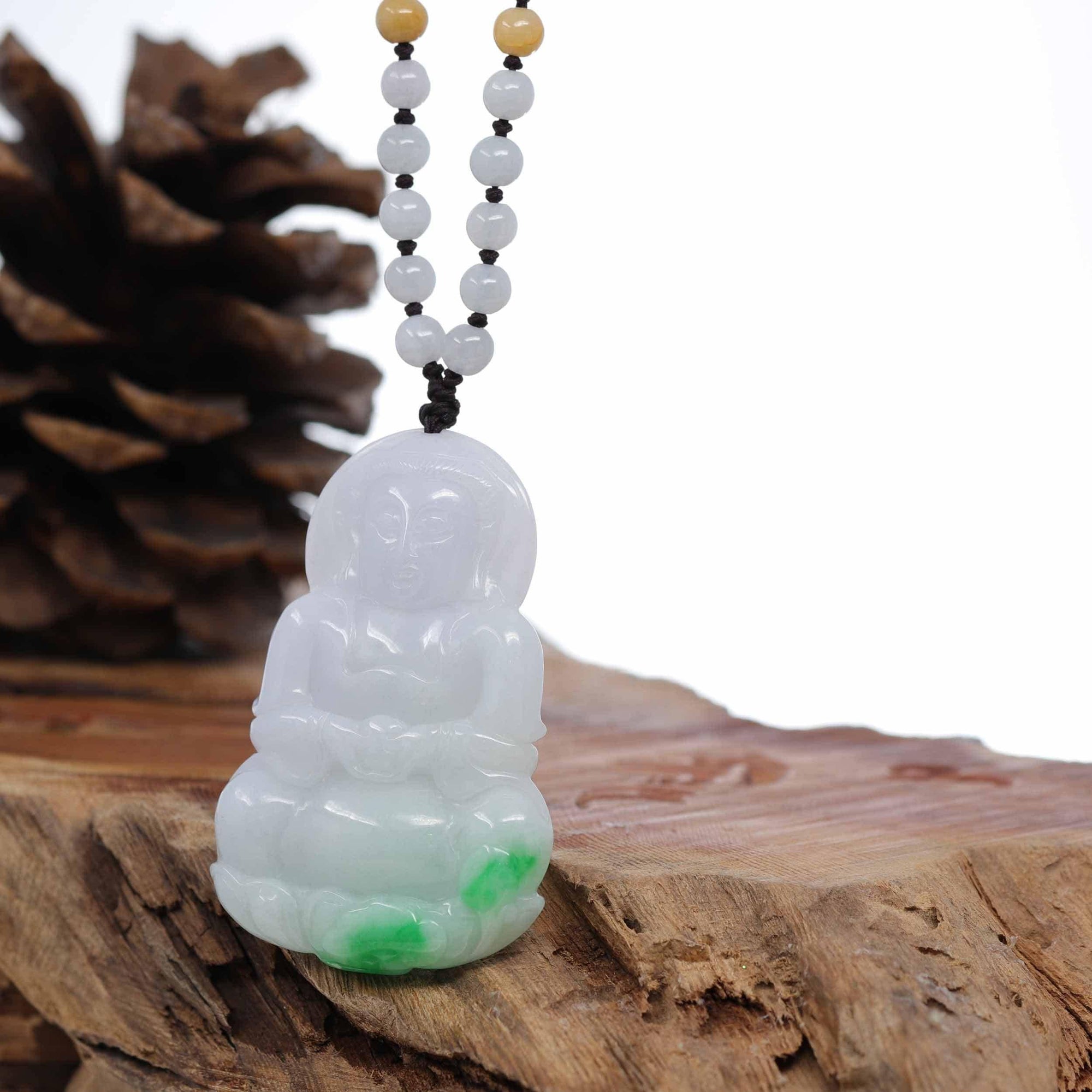 Baikalla "Goddess of Compassion" Genuine Burmese Jadeite Jade Guanyin Lotus Necklace