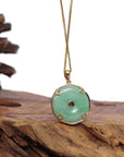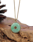 Baikalla "Good Luck Button" Necklace Green Jadeite Jade Lucky KouKou Pendant Necklace