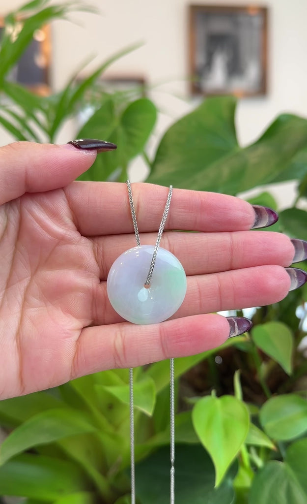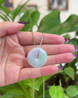 Baikalla "Good Luck Button" Necklace Lavender Green Jadeite Jade Lucky Ping An Kou Pendant