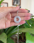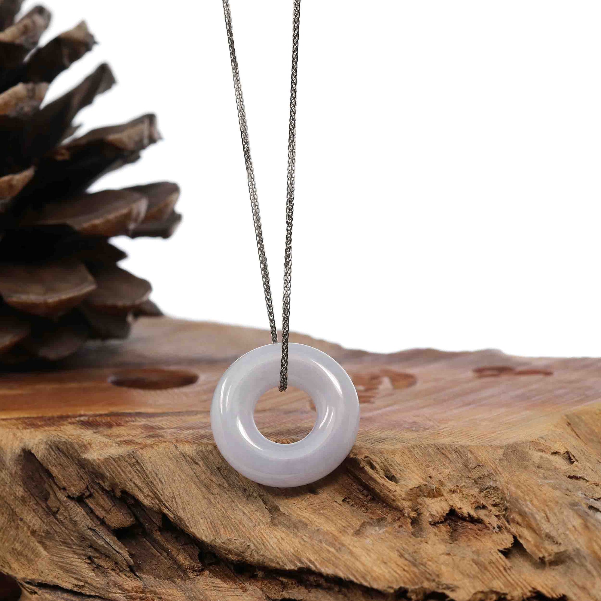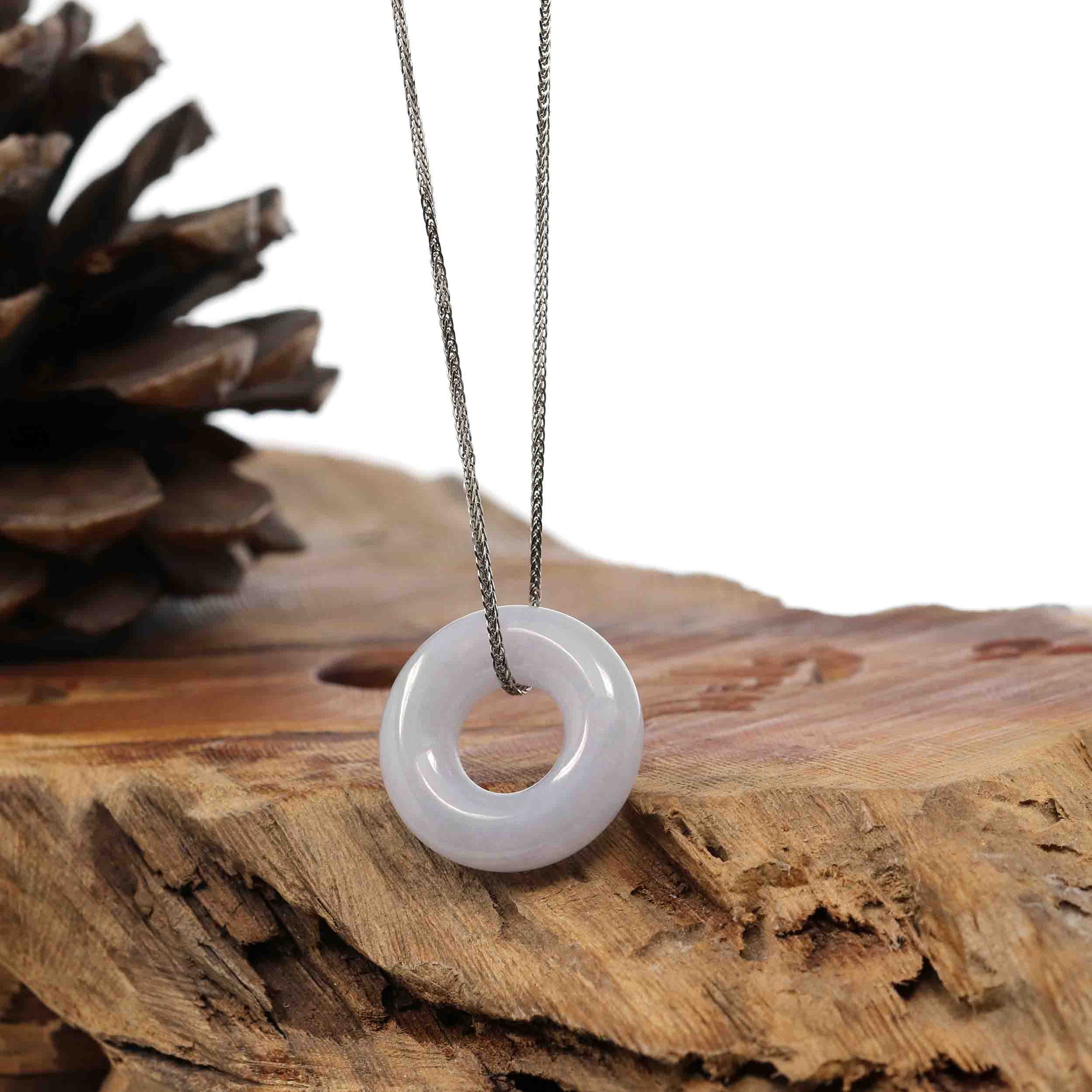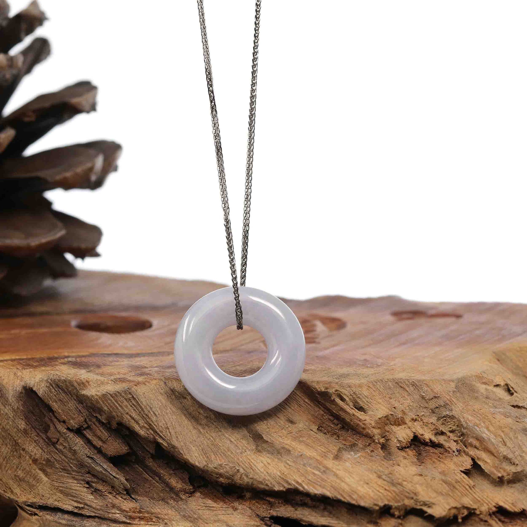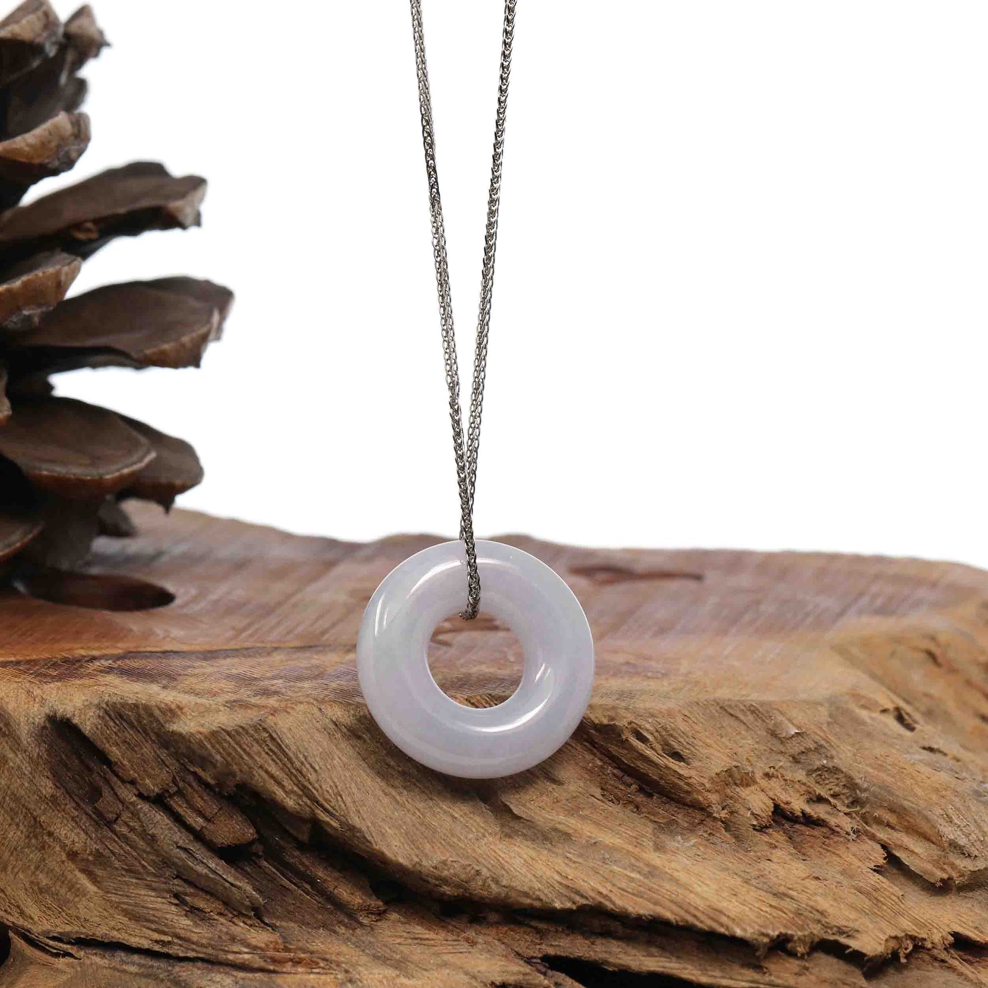 * Design Concept--- The simple shape of a circle represents things such as happiness, wholeness, and prosperity. Or as Sotheby's auction house called a jade bangle. "Circle of Heaven". This necklace is made with very high-quality genuine Burmese lavender jadeite jade. Which produces some fine jade. The texture is very old from the old mine. Gifting one of these is like wishing the best of luck to your family or loved ones.