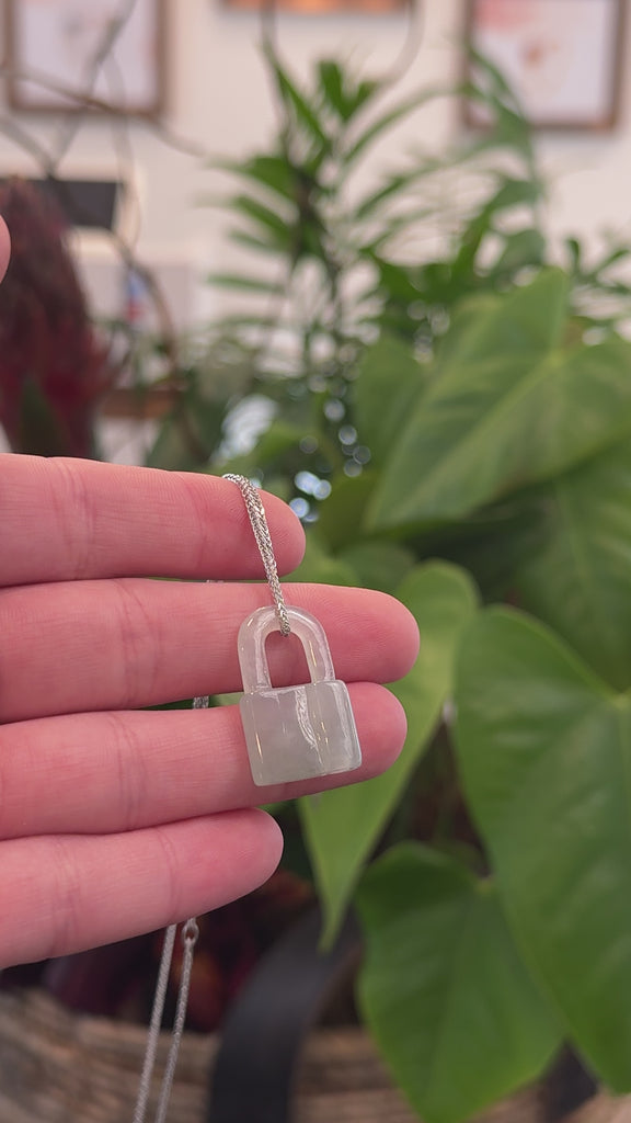 Baikalla Ice Green Jadeite Jade Lock Necklace Pendant