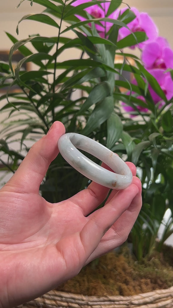 It's a half-round comfort fit oval bangle which is flat on the inside, making it comfortable for everyday wear. Known for its durability, jadeite is also believed to bring good luck. Whether as a gift for yourself or a loved one, this jade bangle is a meaningful treasure that combines natural beauty, lasting craftsmanship, and exceptional value to cherish for years to come.