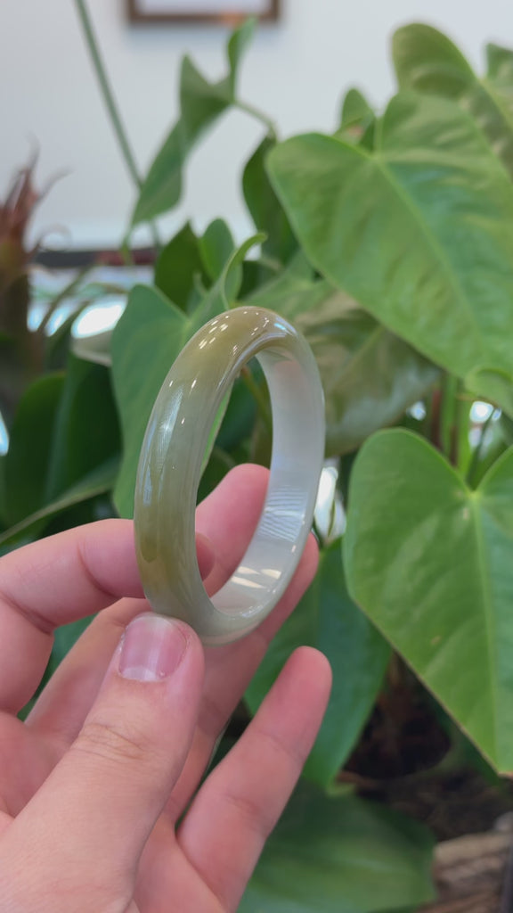 * DETAILS--- This bracelet is crafted from quality, genuine Burmese honey yellow Jadeite Jade with patches of honey yellow color. The jade’s texture is very smooth and semi translucent, featuring a captivating honey yellow color mostly on one side, with no natural lines and no cloudy spots. Really perfect bangle. The bangle has good semi icy translucency and beautiful semi fine texture. The bangle has a classic half-round style that enhances its elegance also offers comfort, making it a perfect piece for jade lovers and collectors alike.