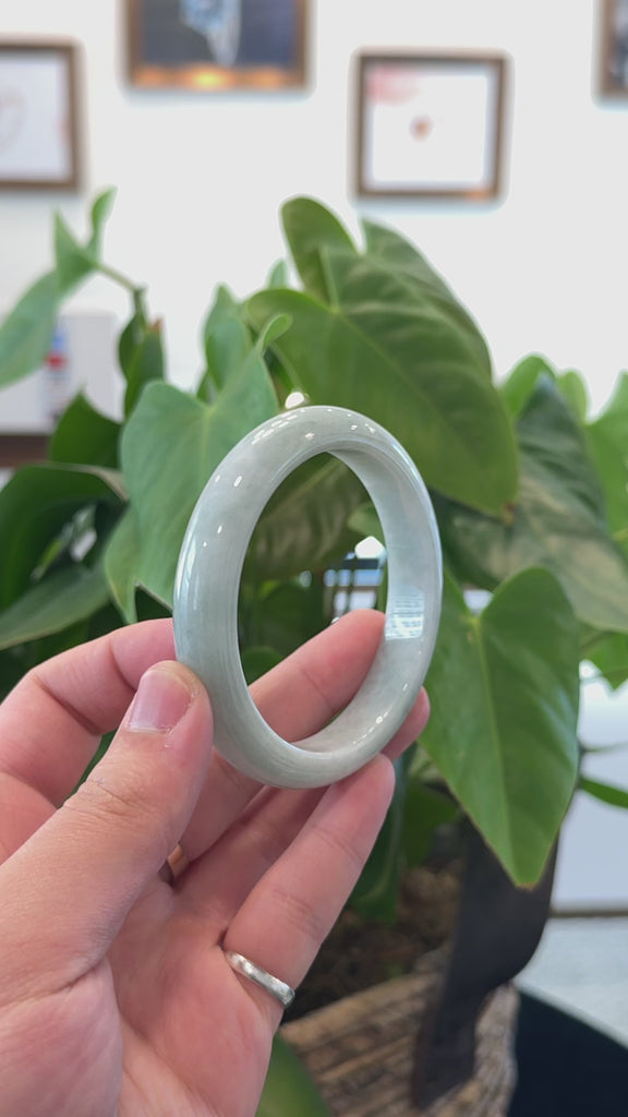 * DETAILS--- This bracelet is crafted from high quality, genuine Burmese light green Jadeite Jade. The jade’s texture is fine, with some small cloudy spots. The bangle has great green color. The bangle has a classic full-round style that enhances its elegance also offers comfort, making it a perfect piece for jade lovers and collectors alike.
