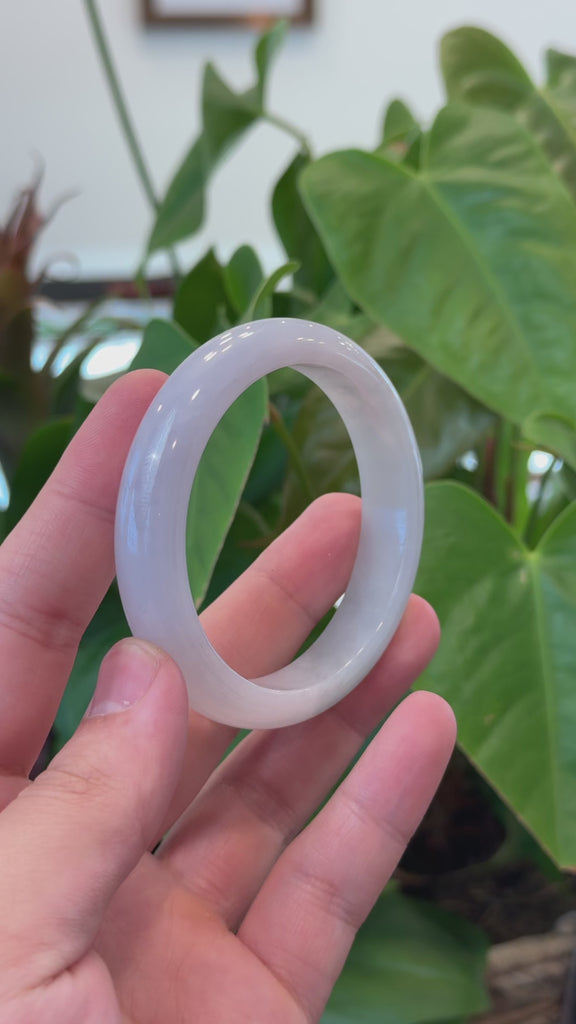 * DETAILS--- This bracelet is crafted from high quality, genuine Burmese semi icy lavender and green Jadeite Jade. The jade’s texture is very smooth and semi icy translucent, featuring a captivating half lavender and green color through out, with no natural lines and few cloudy spots. Even more beautiful in person. The bangle has great icy translucency and beautiful fine texture. The bangle has a classic full-round style that enhances its elegance also offers comfort, making it a perfect piece for jade lovers and collectors alike.