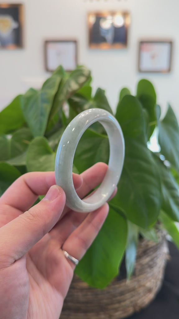 * DETAILS--- This exquisite bangle is crafted from premium Burmese jadeite in a light green hue. With its smooth, translucent texture and captivating color, it radiates a timeless elegance and cultural heritage. The classic half-round comfort design enhances the jade’s natural beauty with simplicity, making this bracelet a cherished addition to any jewelry collection. just has some clouds and inclusion, Known to symbolize protection and strength, jade bangles hold deep meaning, making this piece a thoughtful, one-of-a-kind gift for yourself or someone truly special.