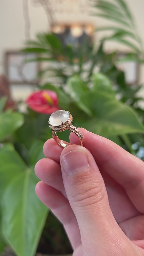 Baikalla 18k Rose Gold High Icy Natural Burmese Jadeite Jade Engagement Ring w/ Natural Diamonds Halo