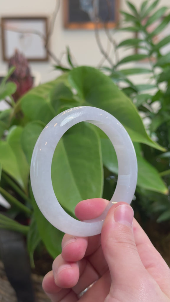 * DETAILS--This bangle is made from high-quality genuine Burmese Jadeite jade. It has a very smooth & translucent ice texture with a light lavender colors throughout. The classic half-round design offers comfort and style. Jadeite jade is one of the toughest gemstones, and it's believed to bring good luck. This bangle makes a special gift for you or a loved one.