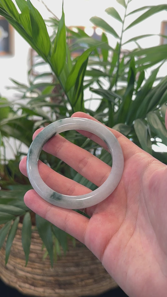 * DETAILS--- This bangle is crafted from genuine Burmese Jadeite jade in a light icy blue-green hue and a deep blue-green patch. With its smooth, translucent texture and captivating color, it radiates a timeless elegance and cultural heritage. It's a half round, comfort-fit bangle, which is flat on the inside of the bangle and comfortable for everyday wear. Known for its durability, jadeite is also believed to bring good luck. This bangle makes a thoughtful and meaningful gift for yourself or someone special.