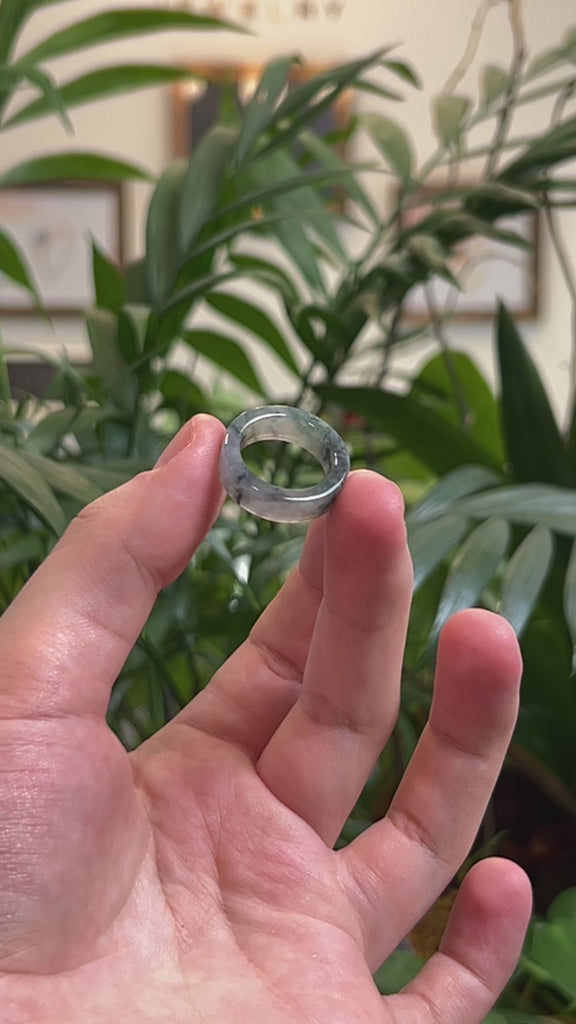 Baikalla Icy Wuji & Oil-Green Burmese Jadeite Jade Traditional Ring #5.5
