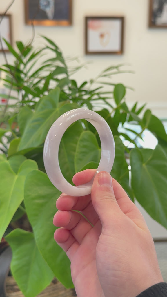 * DETAILS--- This beautiful luxury bangle is made from premium Burmese Jadeite jade, featuring a smooth ice texture and a lovely light lavender color. Its classic half-round design highlights its natural beauty and ensures a comfortable fit. A timeless piece, perfect as a thoughtful gift for yourself or someone truly special.