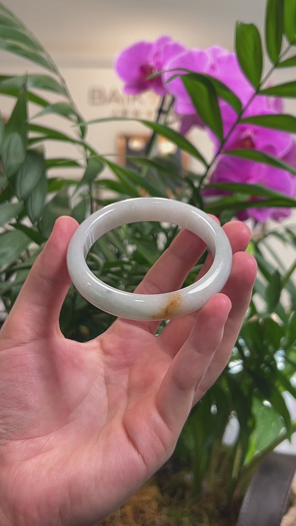Designed in a half-round, comfort-fit style, the bangle is flat on the inside for a comfortable feel, perfect for everyday wear. Known for its durability, jadeite is also cherished as a symbol of good luck, protection, and harmony. Whether as a gift for yourself or a loved one, this jade bangle is a meaningful treasure that combines natural beauty, lasting craftsmanship, and exceptional value to cherish for years to come.