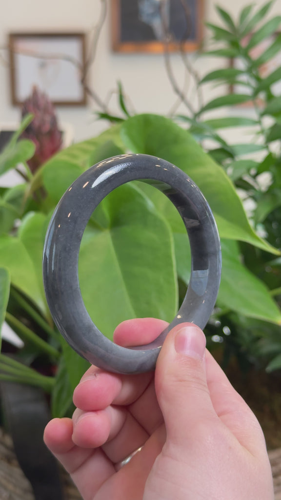 * DETAILS--- This unique Wuji Jade bangle is made from premium Burmese Jadeite, featuring deep black tones resembling Wuji chicken skin. Its smooth, translucent texture and classic half-round design highlight its natural beauty with elegance. A rare and meaningful collectible, Some men like also. it’s an unique and thoughtful gift for yourself or someone special.