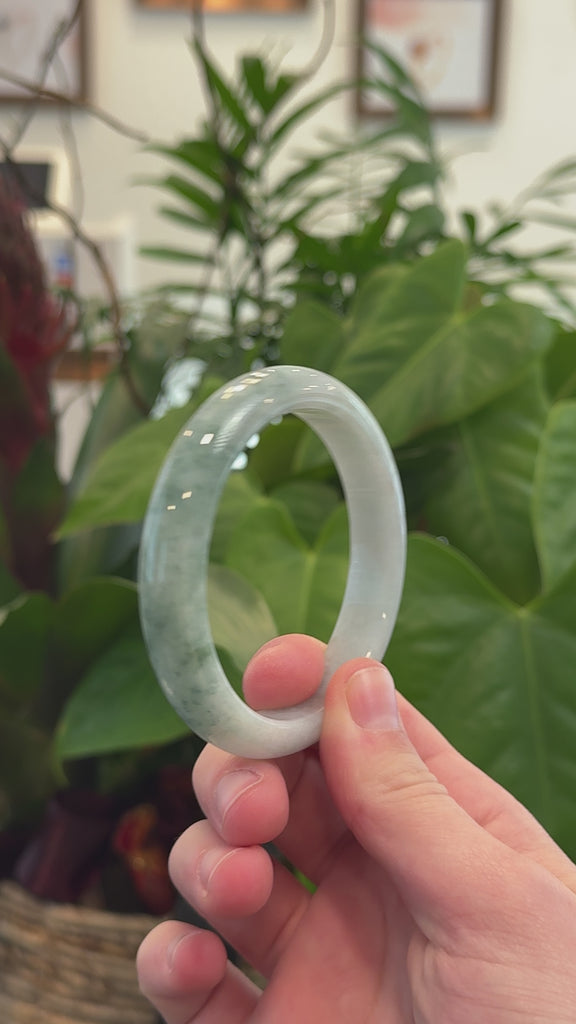 * DETAILS--- This beautiful bangle is made from premium Burmese Jadeite jade, featuring a smooth texture and a lovely blue-green color. Its classic half-round design highlights its natural beauty and ensures a comfortable fit. A timeless piece, perfect as a thoughtful gift for yourself or someone truly special.
