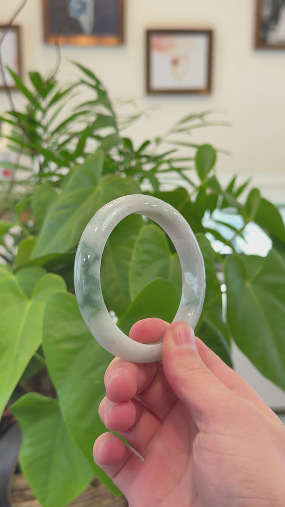 * DETAILS--- This beautiful bangle is made from premium Burmese Jadeite jade, featuring a smooth texture and a lovely blue-green color. Its classic half-round design highlights its natural beauty and ensures a comfortable fit. A timeless piece, perfect as a thoughtful gift for yourself or someone truly special.