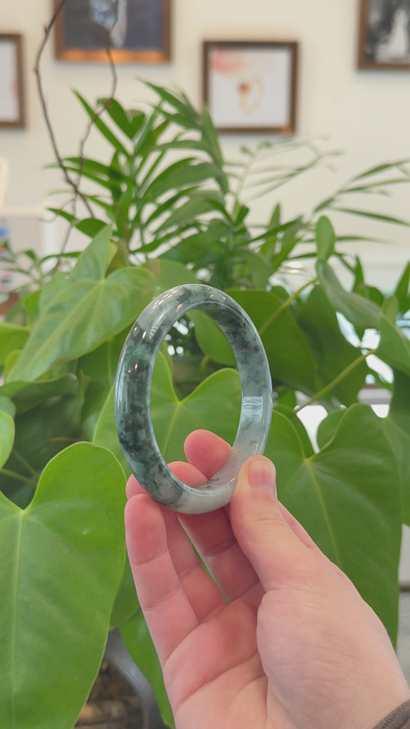 * DETAILS--- This beautiful bangle is made from premium Burmese Jadeite jade, featuring a smooth texture and a deep blue-green colors. Its classic half-round design highlights its natural beauty and ensures a comfortable fit. A timeless piece, perfect as a thoughtful gift for yourself or someone truly special.