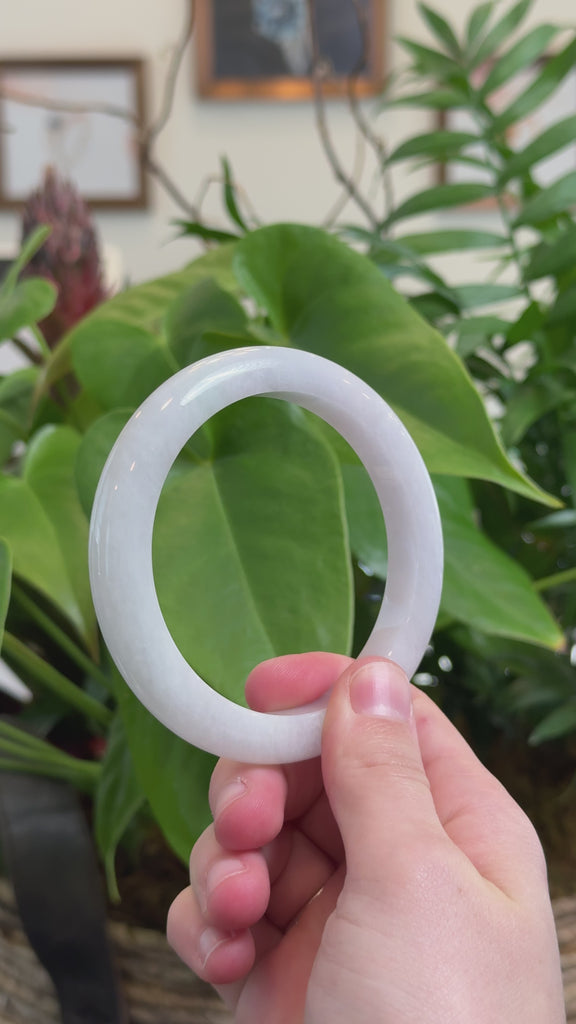 * DETAILS--This bangle is made from genuine Burmese Jadeite jade. It has a very smooth & translucent texture with a light green and lavender colors throughout. The classic half-round design offers comfort and style. Jadeite jade is one of the toughest gemstones, and it's believed to bring good luck. This bangle makes a special gift for you or a loved one.