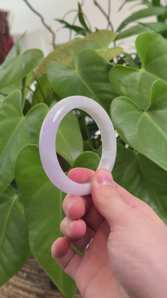 * DETAILS---This stunning jade bangle is crafted from fine Burmese jadeite in a soft lavender hue. Its smooth texture and timeless elegance make it truly eye-catching. The traditional round shape is a favorite for many, offering a classic and graceful look. With some small natural lines. This bangle is more than just fine jewelry — it’s a meaningful gift, perfect for yourself or someone special.