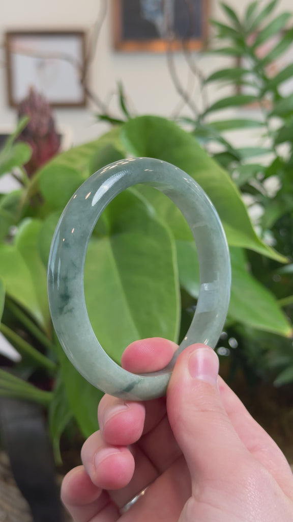 * DETAILS--- This beautiful bangle is made from premium Burmese Jadeite jade, featuring a smooth texture and a oil-green color. Its classic half-round design highlights its natural beauty and ensures a comfortable fit, It's a bigger size. A timeless piece, perfect as a thoughtful gift for yourself or someone truly special.