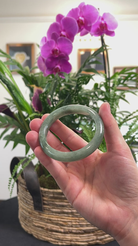 Designed in a half-round, comfort-fit style, the bangle is flat on the inside for a comfortable feel, perfect for everyday wear. Known for its durability, jadeite is also cherished as a symbol of good luck, protection, and harmony. Whether as a gift for yourself or a loved one, this jade bangle is a meaningful treasure that combines natural beauty, lasting craftsmanship, and exceptional value to cherish for years to come.