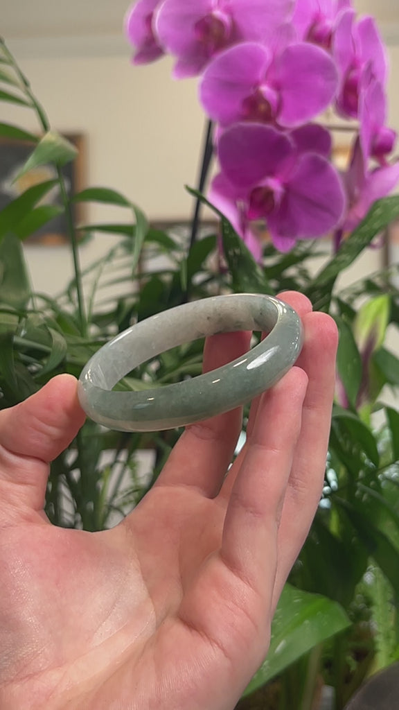 It's a half-round, "comfort fit" bangle, which is flat on the inside, making it comfortable for everyday wear. Known for its durability, jadeite is also believed to bring good luck. Whether as a gift for yourself or a loved one, this jade bangle is a meaningful treasure that combines natural beauty, lasting craftsmanship, and exceptional value to cherish for years to come.