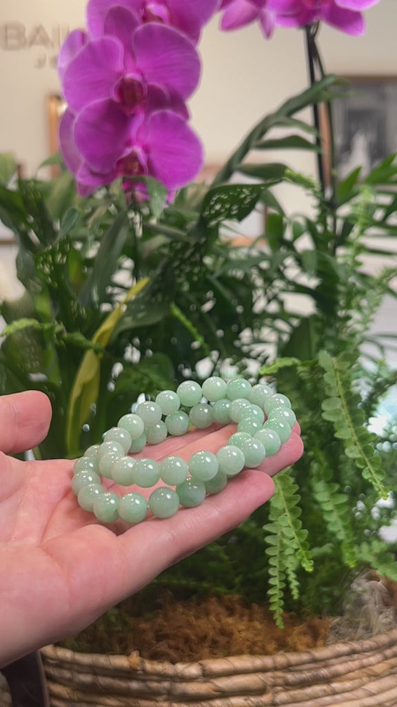* DETAILS---This bracelet is made with fine quality, natural, genuine Burmese jadeite jade beads in a soft apple-green color that is smooth and semi-translucent in texture. Known for its durability, jadeite is also believed to bring good luck. Whether as a gift for yourself or a loved one, this jade beaded bracelet is a meaningful piece.