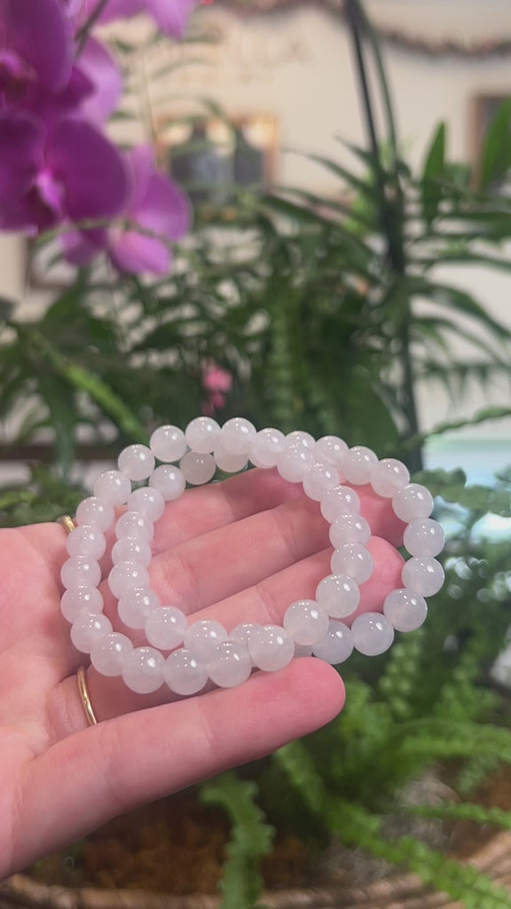 * DETAILS---This bracelet is made with fine quality, natural, genuine Burmese jadeite jade beads in a icy white color throughout with a smooth and translucent texture. Known for its durability, jadeite is also believed to bring good luck. Whether as a gift for yourself or a loved one, this jade beaded bracelet is a meaningful piece.