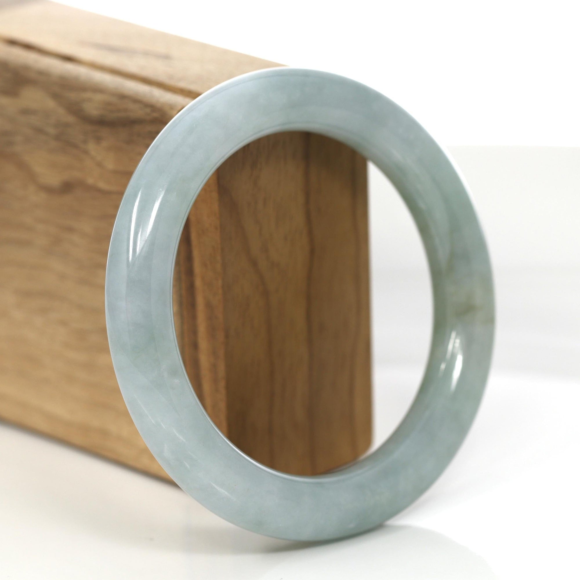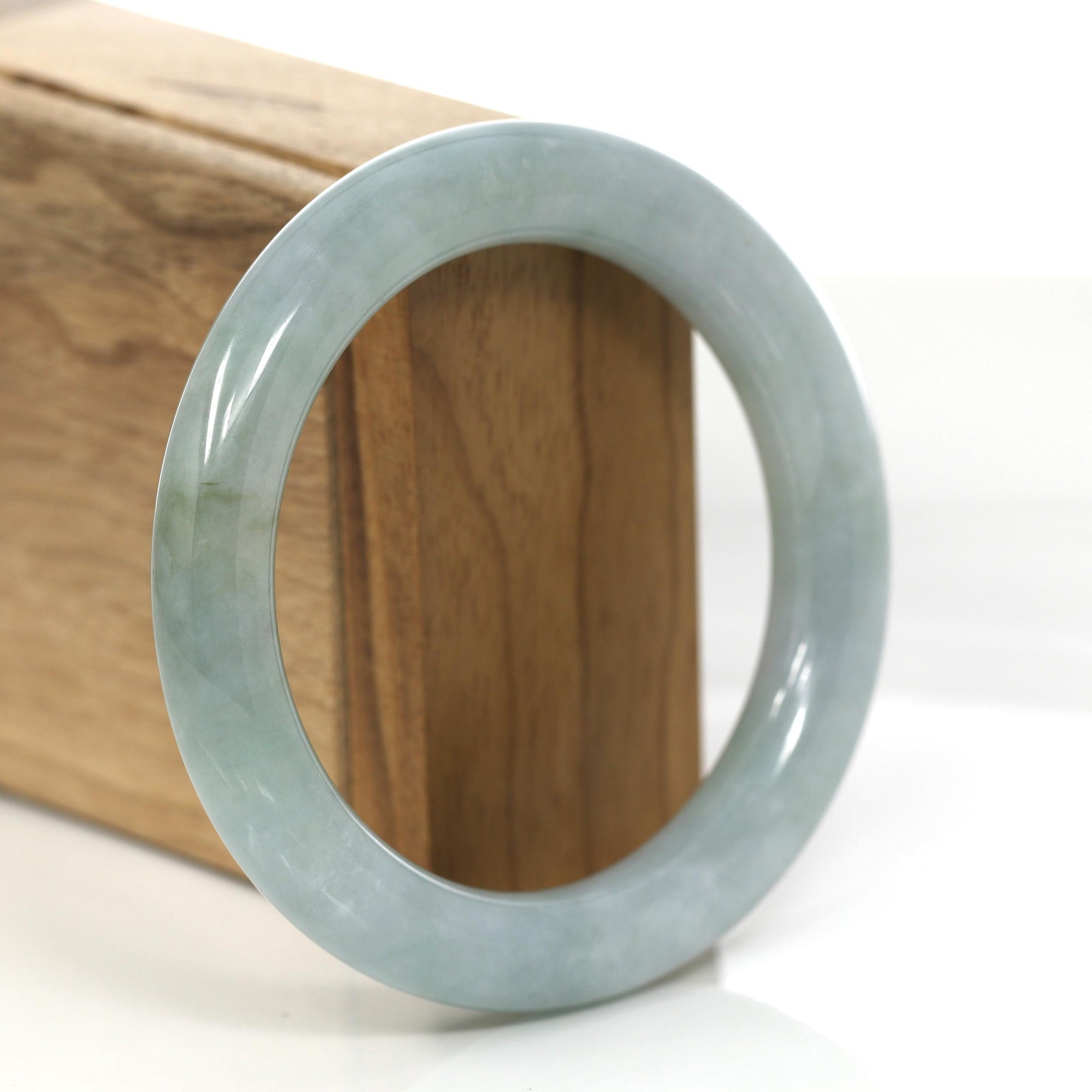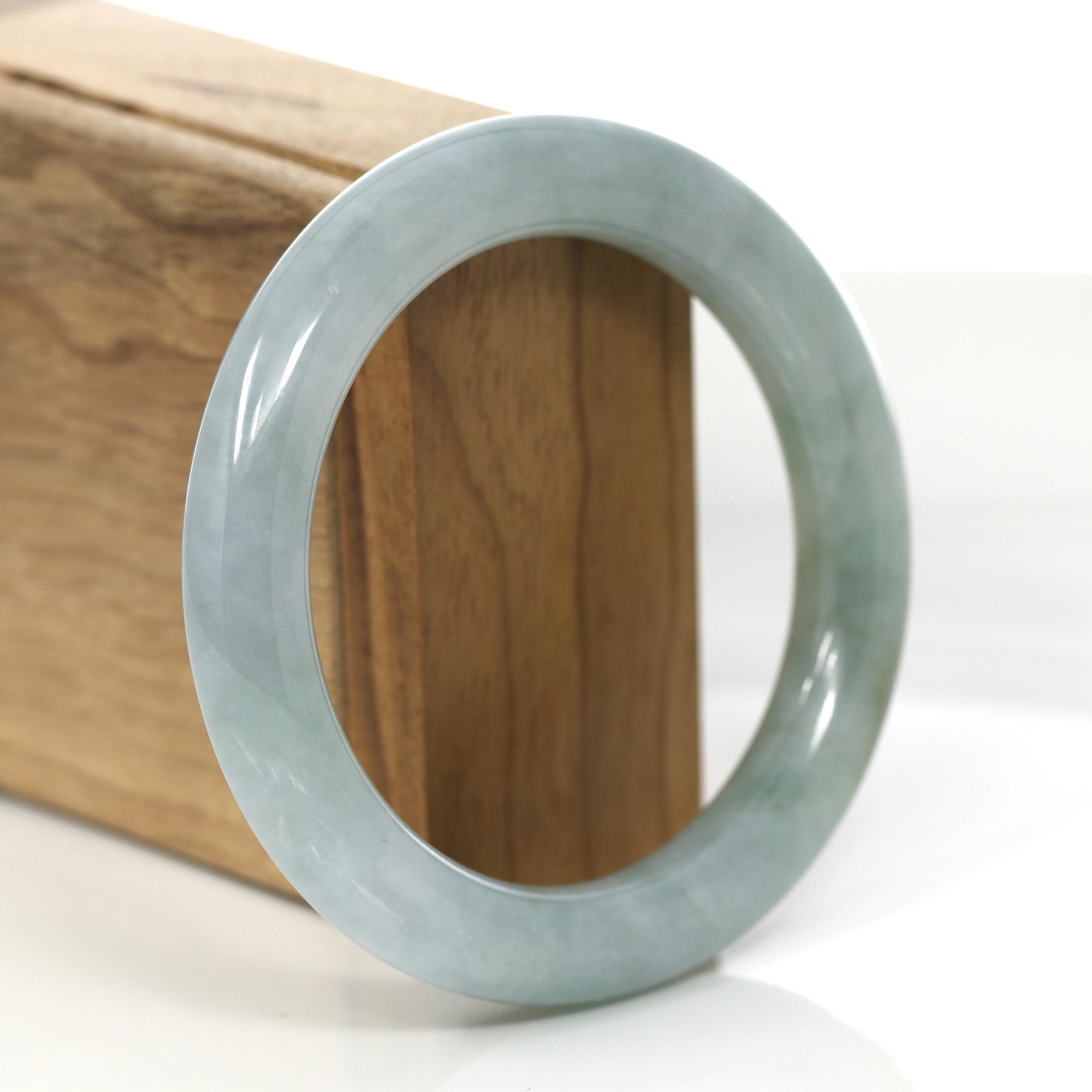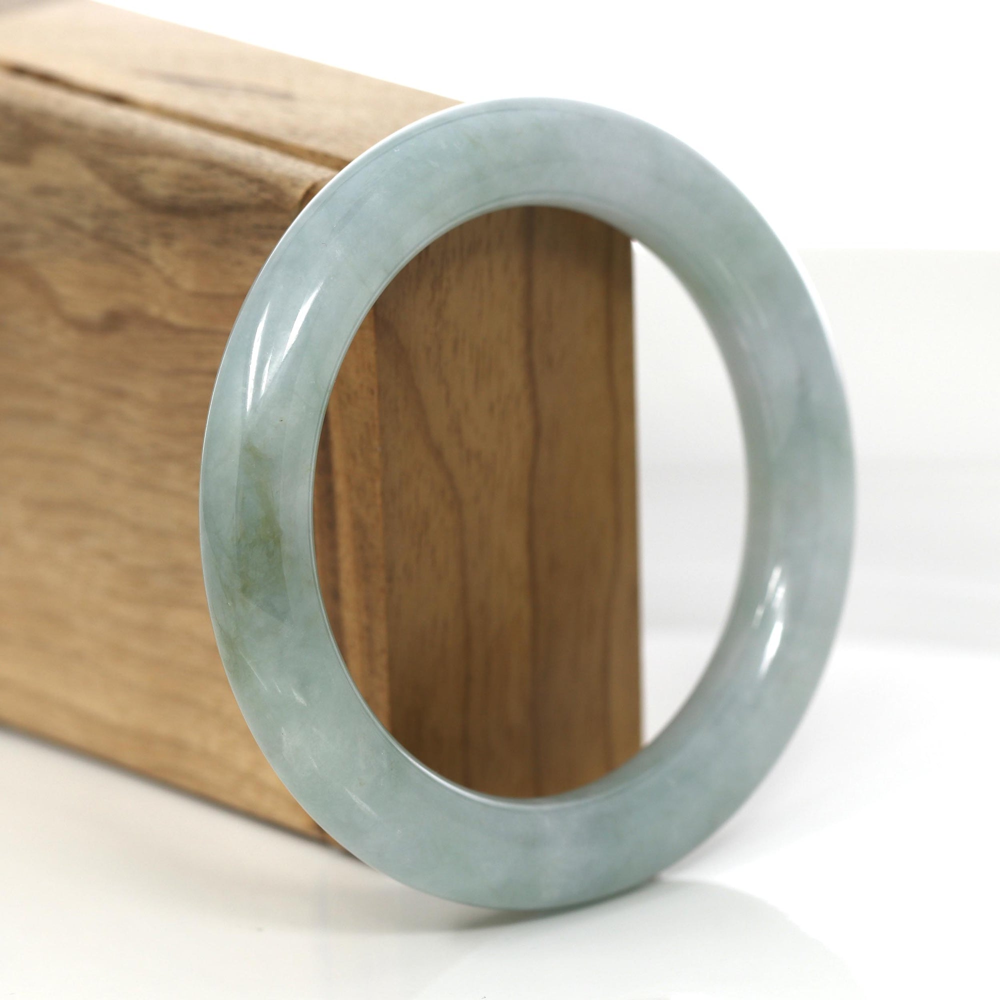 * DETAILS---This bangle is made with genuine Burmese old mine Jadeite jade, The jade texture is very smooth with oil blue- green color. Just has a little clouds. It's a very unique and round bangle. It's a special gift for yourself or your love.