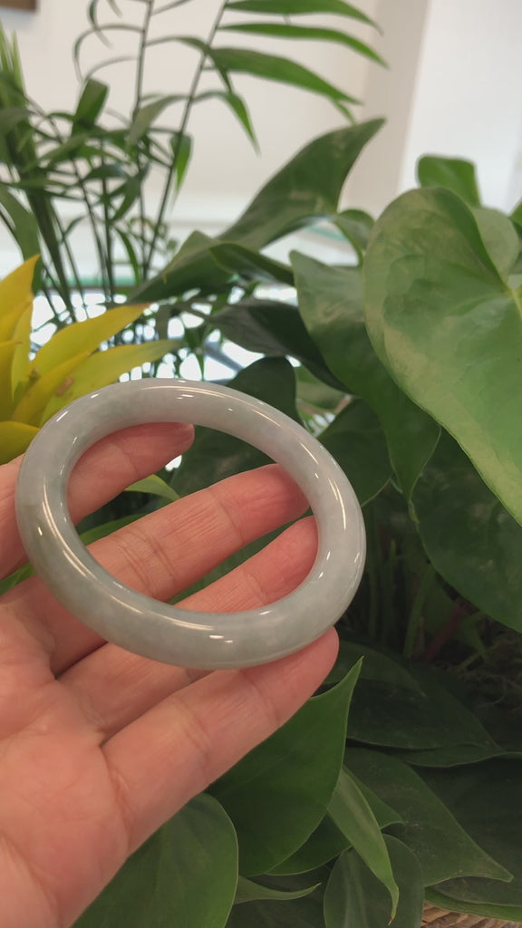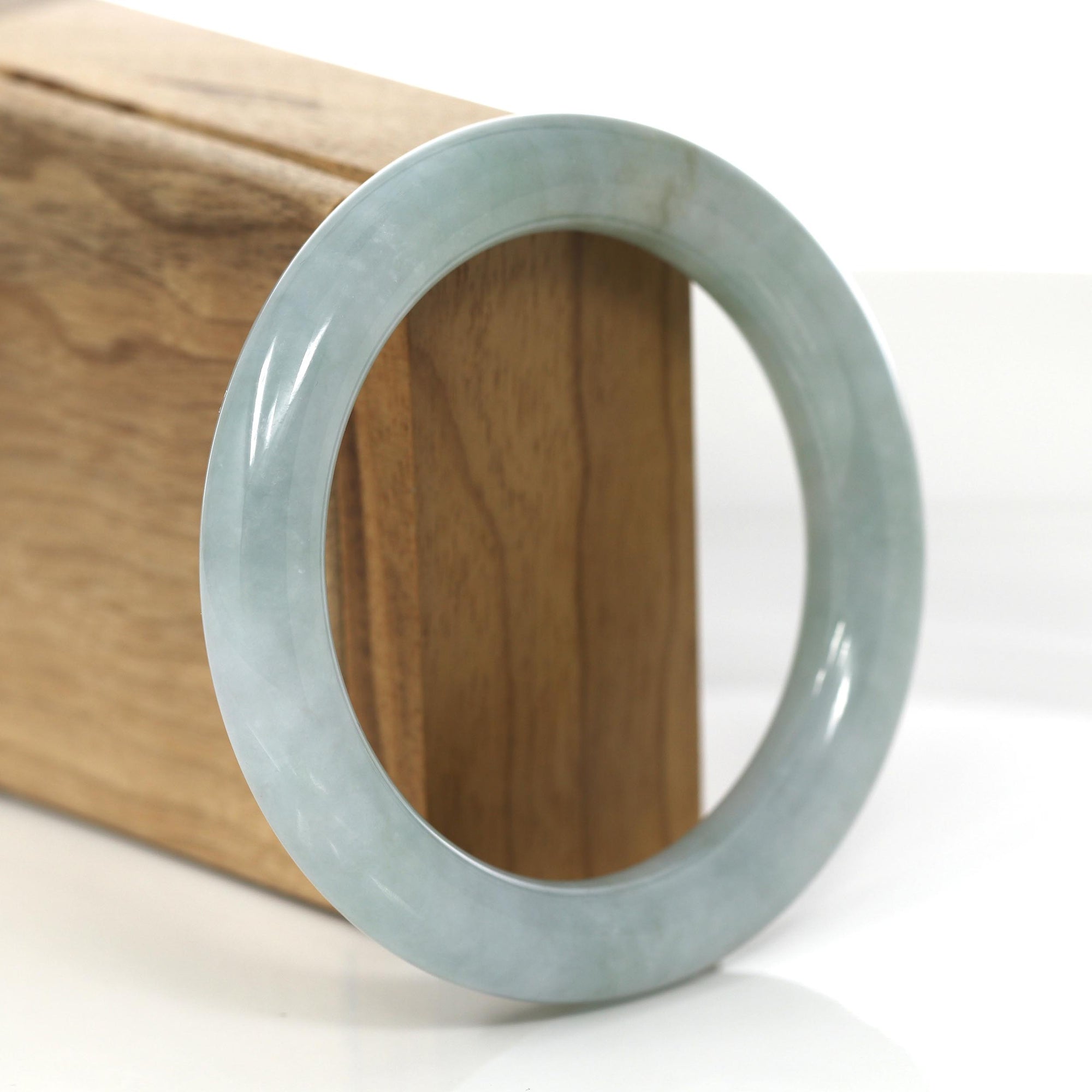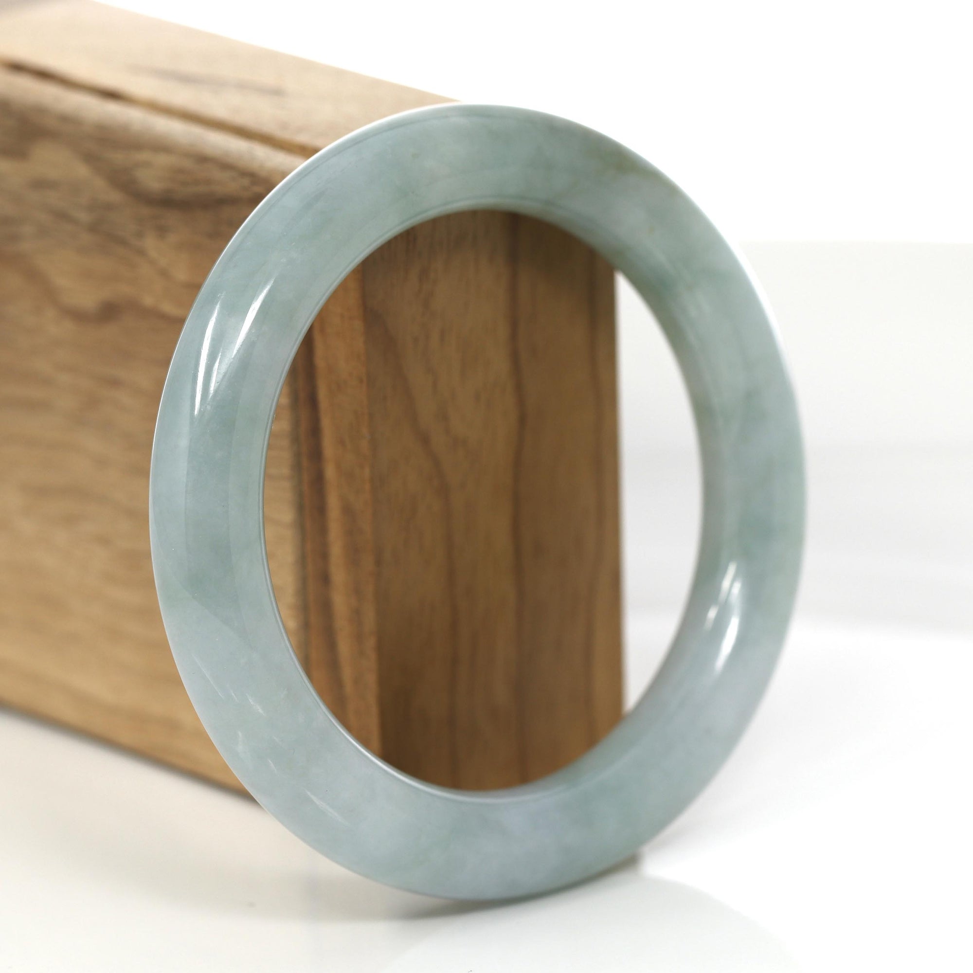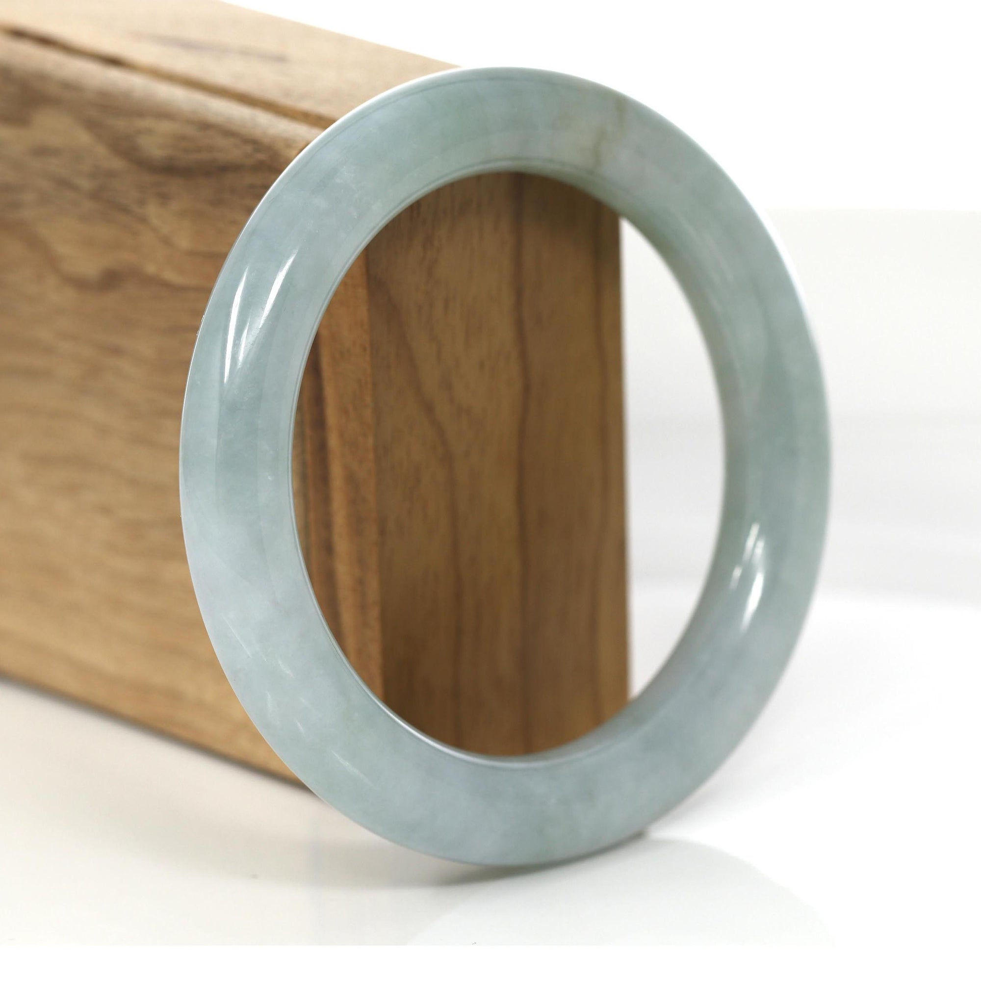 * DETAILS---This bangle is made with genuine Burmese old mine Jadeite jade, The jade texture is very smooth with oil blue- green color. Just has a little clouds. It's a very unique and round bangle. It's a special gift for yourself or your love.