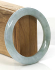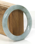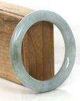 "Classic Half Round" Blue- Green Jade Jadeite Bangle Bracelet (56.11 mm) #680