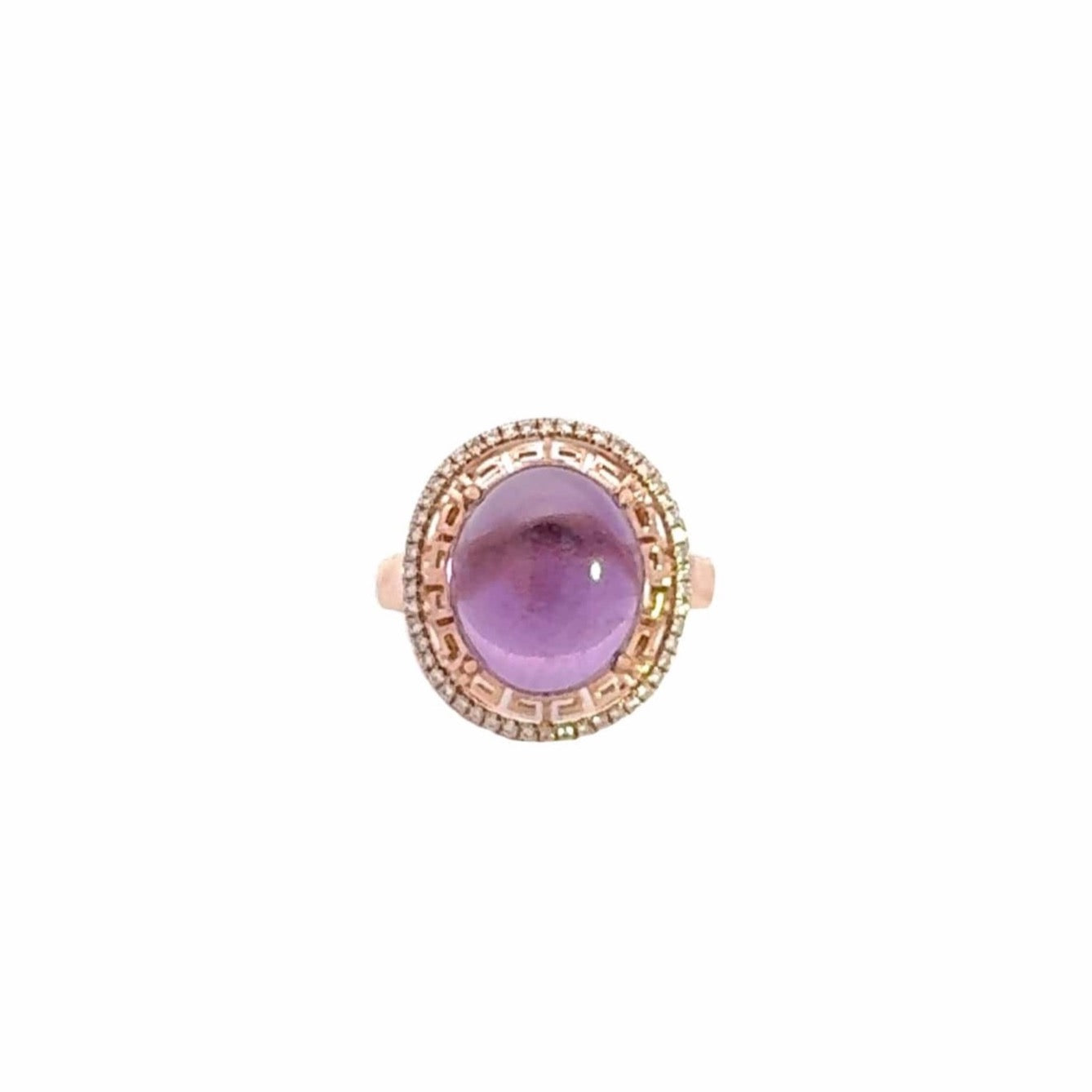 18k Rose Gold Genuine Amethyst and Diamond Ring