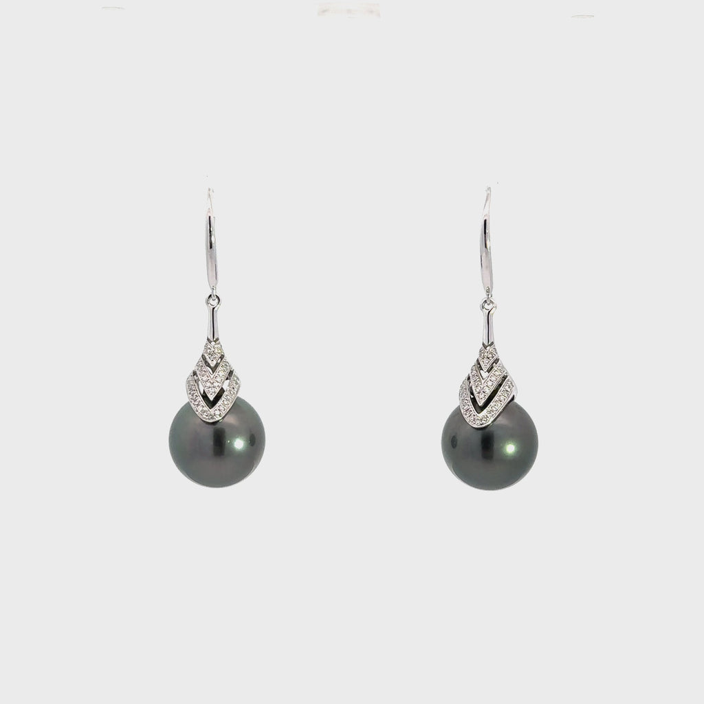 18k White Gold Black Tahitian Cultured Pearl Dangle Earrings