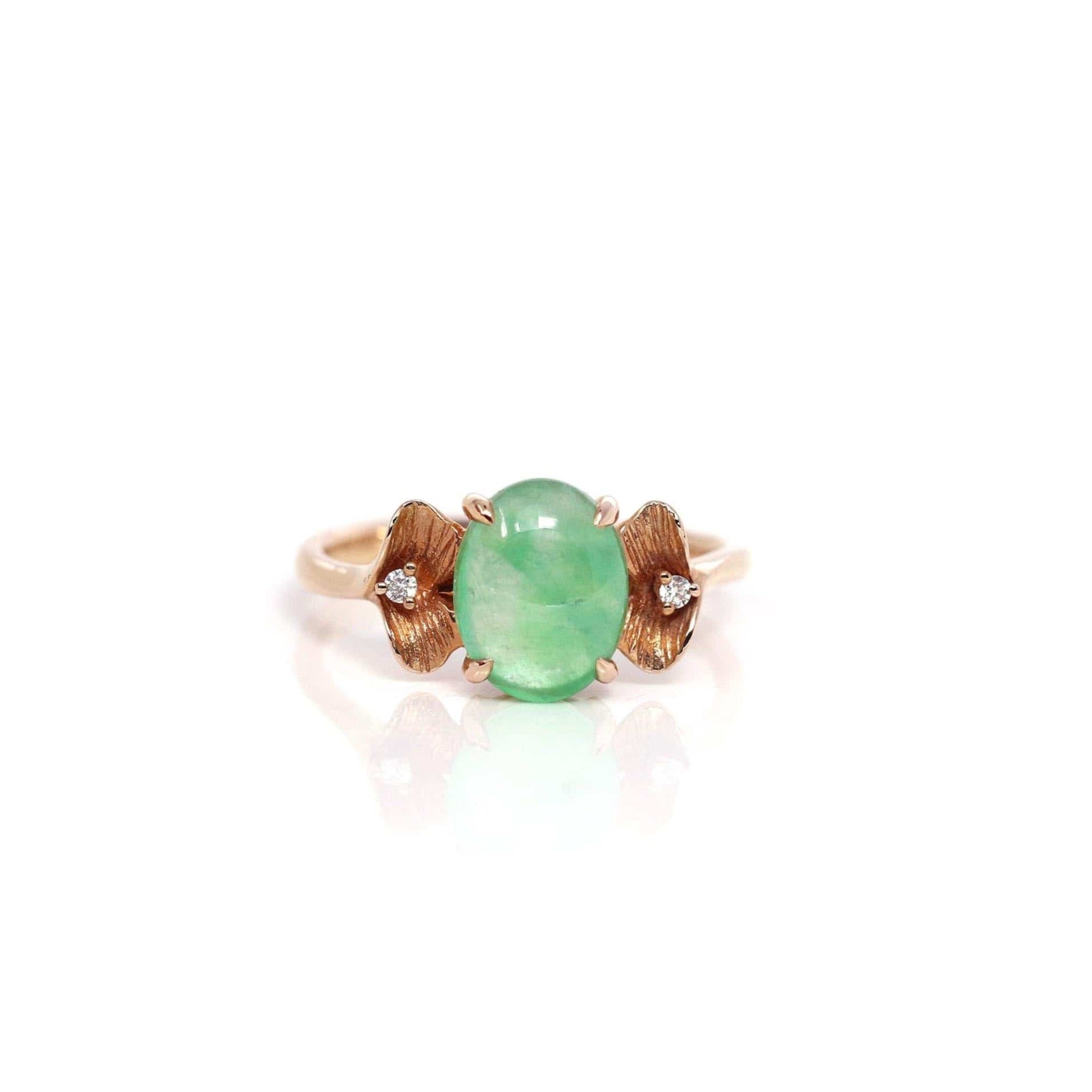 Baikalla™ "Aretha" 18k Rose Gold Natural Icy Green Flower Jadeite Morning Glory Engagement Ring
