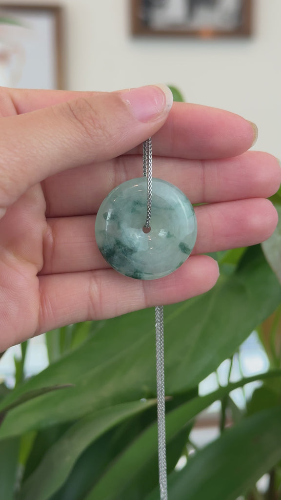 Design Concept--- The simple shape of a circle represents things such as happiness, wholeness, and prosperity. Or as Sotheby's auction house called a jade bangle. "Circle of Heaven". This necklace is made with quality genuine Ice Burmese blue-green jadeite jade. Gifting one of these is like wishing the best of luck to your family or loved ones. It's a perfect gift.