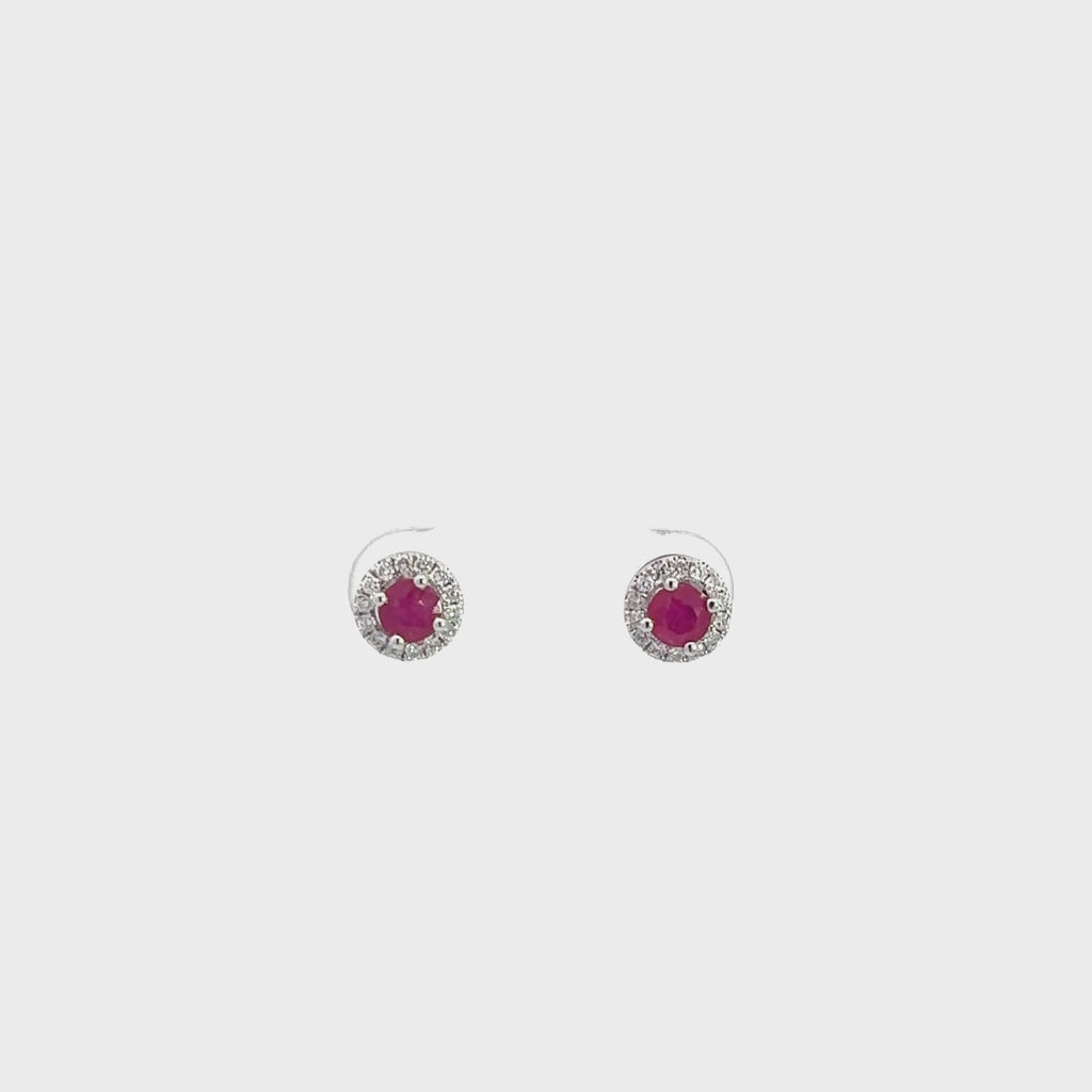 Baikalla 18k White Gold Natural Ruby Earrings w/ Natural Diamond Halo
